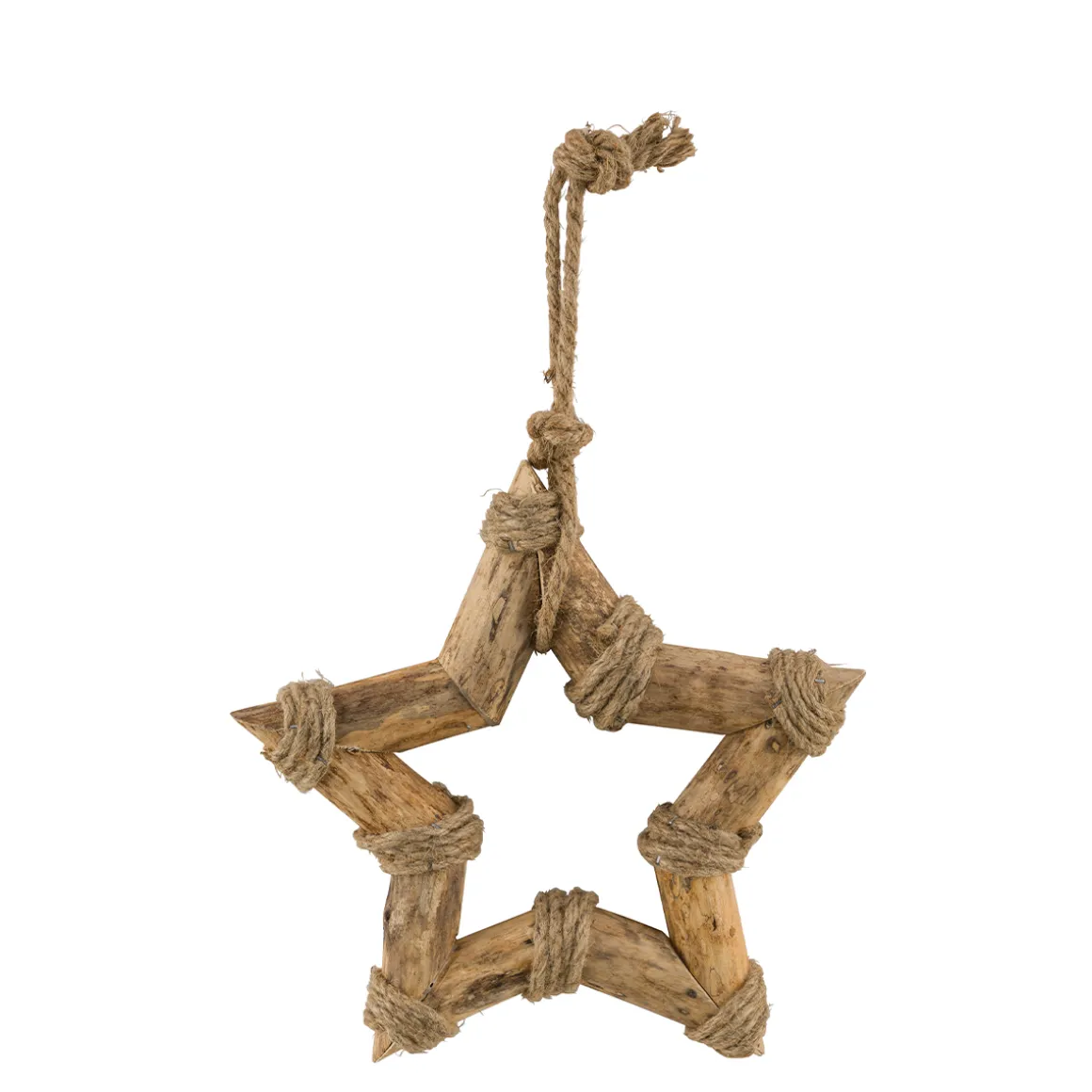 Deko Weihnachtsstern Rustikal, Holzstern Naturholz mit Seile, 33cm