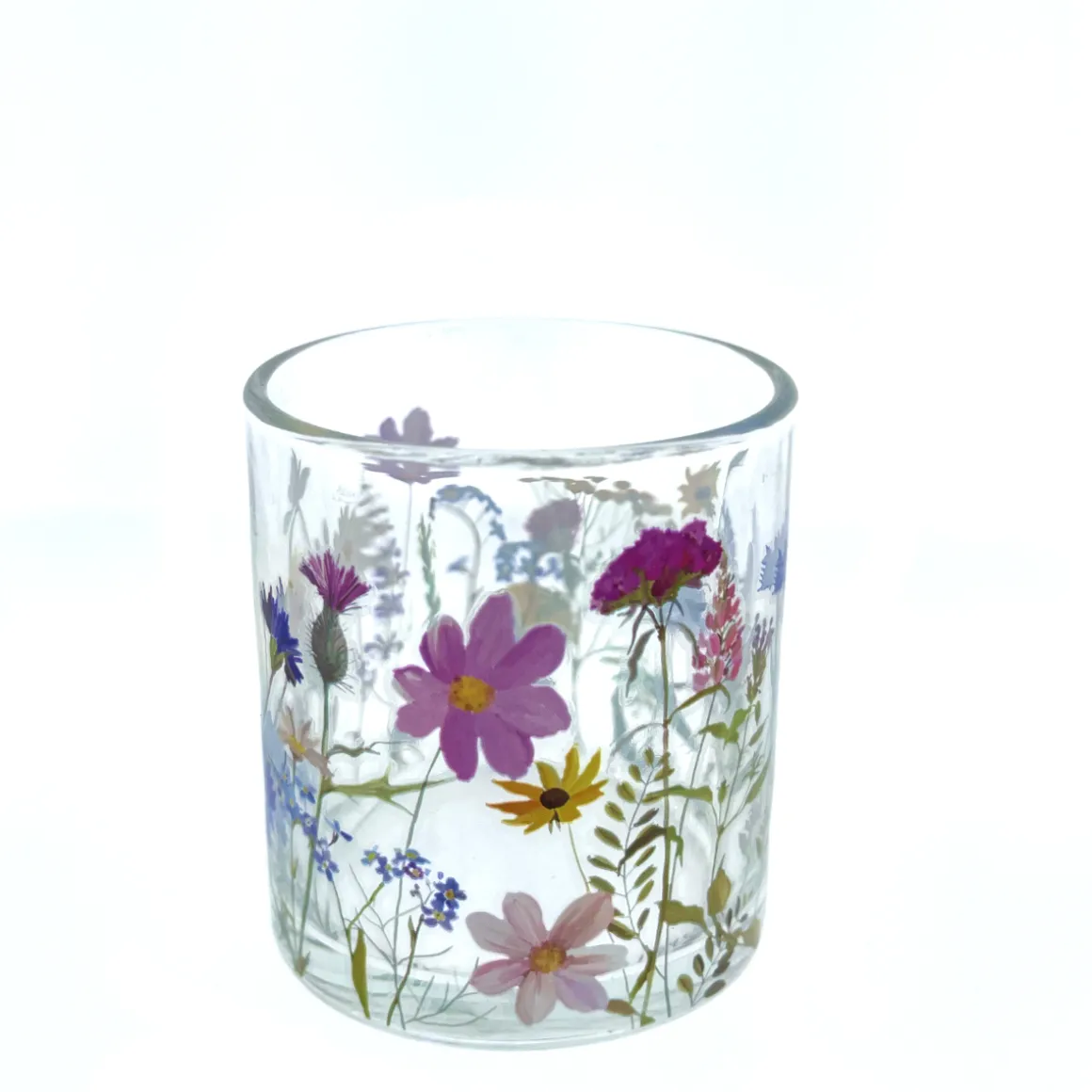 Deko Windlicht Blumen, Windlichtglas mit Blumen, 7x8cm