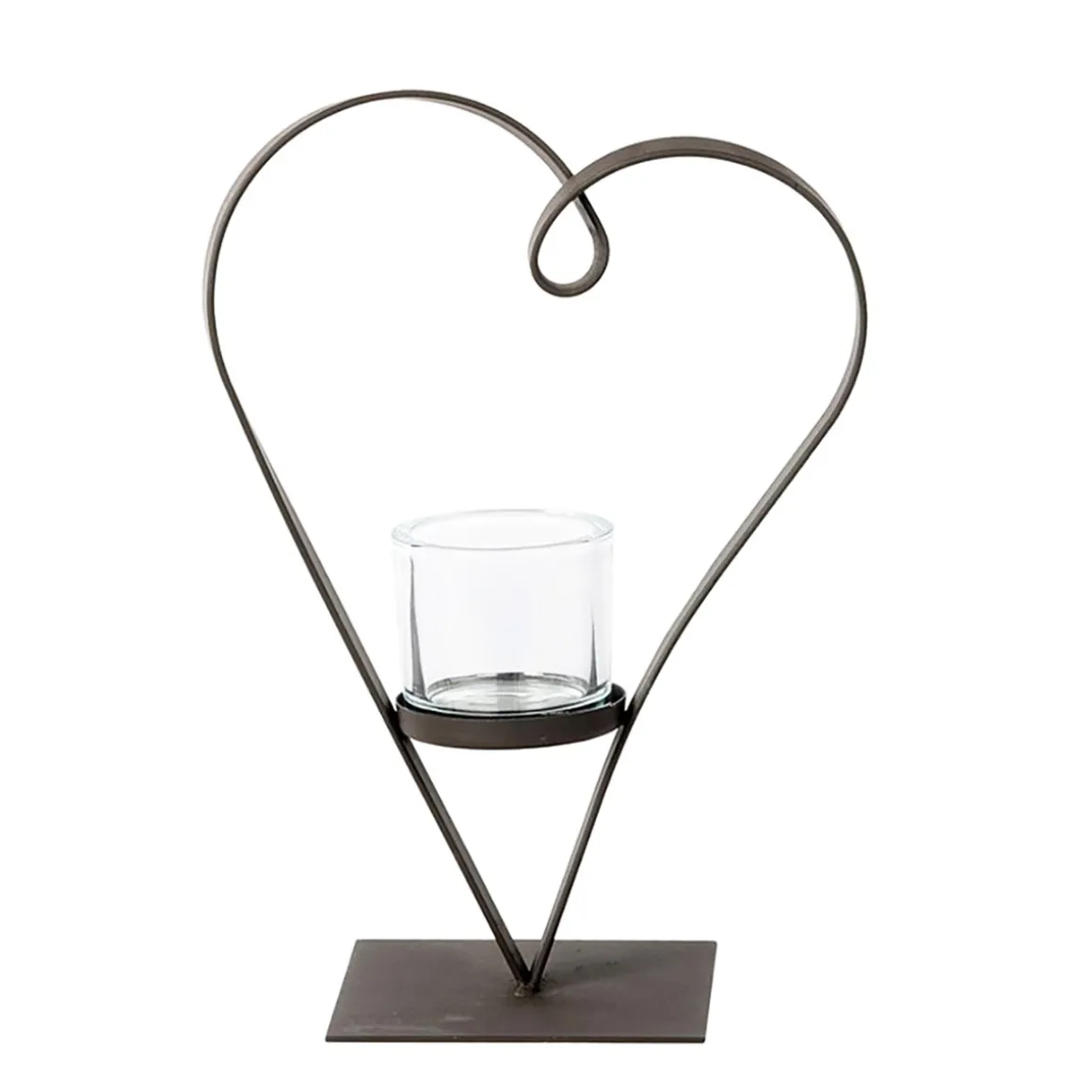 Deko Windlicht Herz Diana, geschwungenes Metallherz auf Fuß, 40cm, WMG Grünberger