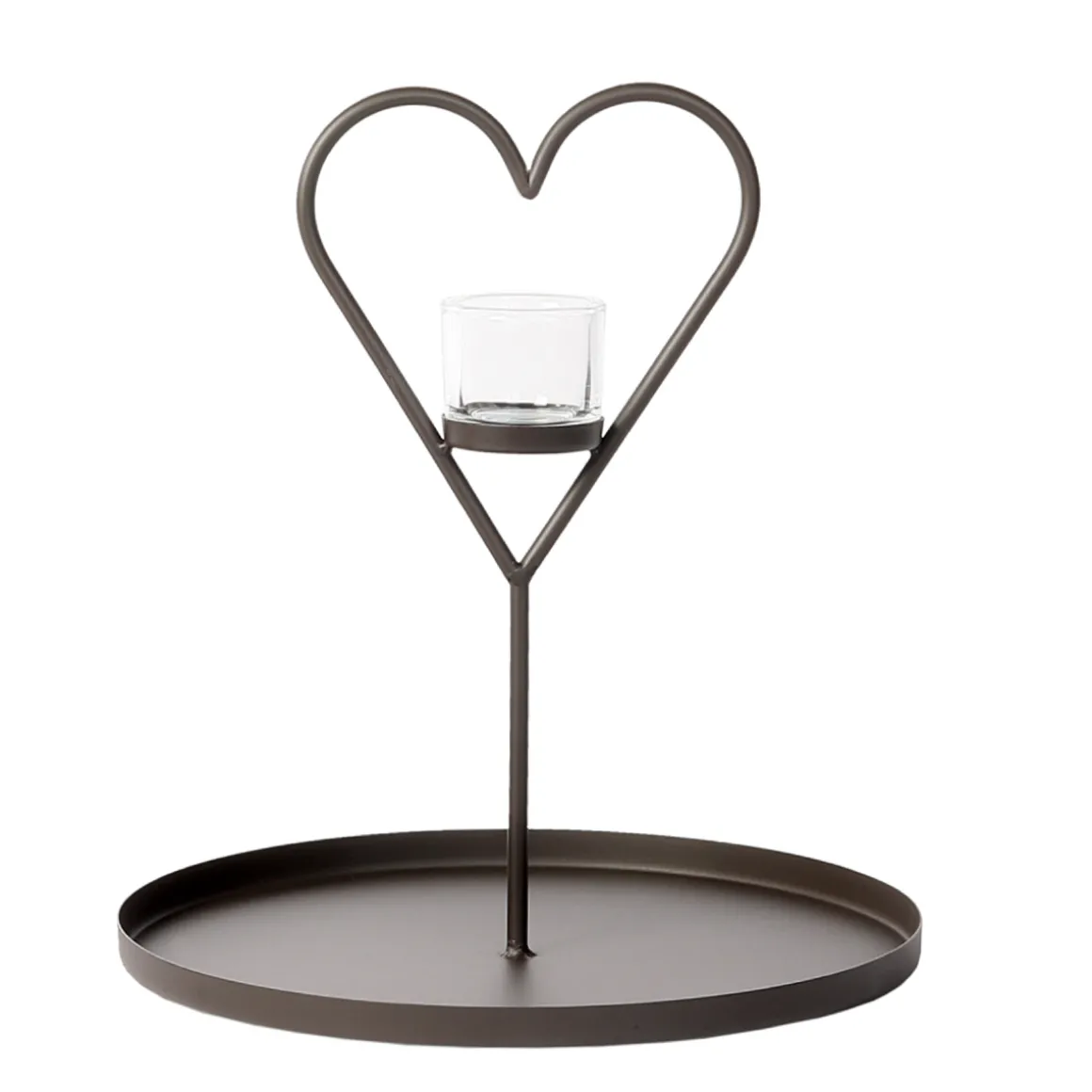 Deko Windlicht Herz Venosa mit Tablett, Metallherz im Tablett, 40cm, WMG Grünberger