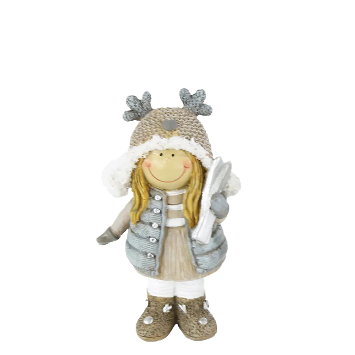 Deko Winterkind Mädchen mit Ski, Skifahrerin mit Mütze, 14cm