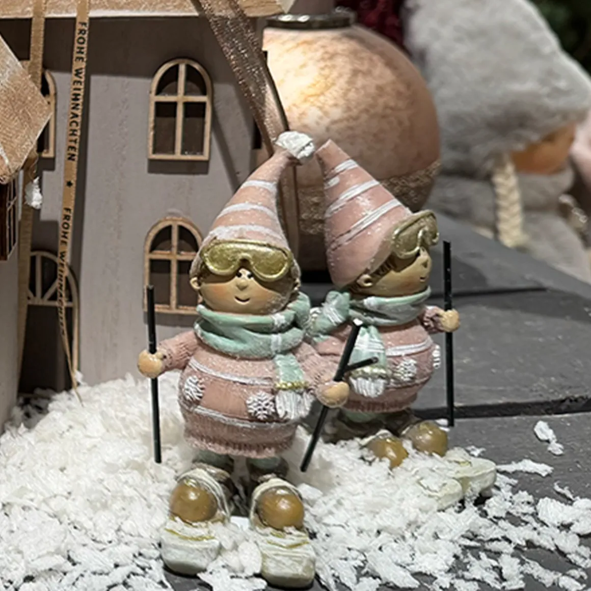 Ob auf der Fensterbank, im Regal oder in einem winterlichen Arrangement – das kleine Skikind fügt sich überall harmonisch ein.
