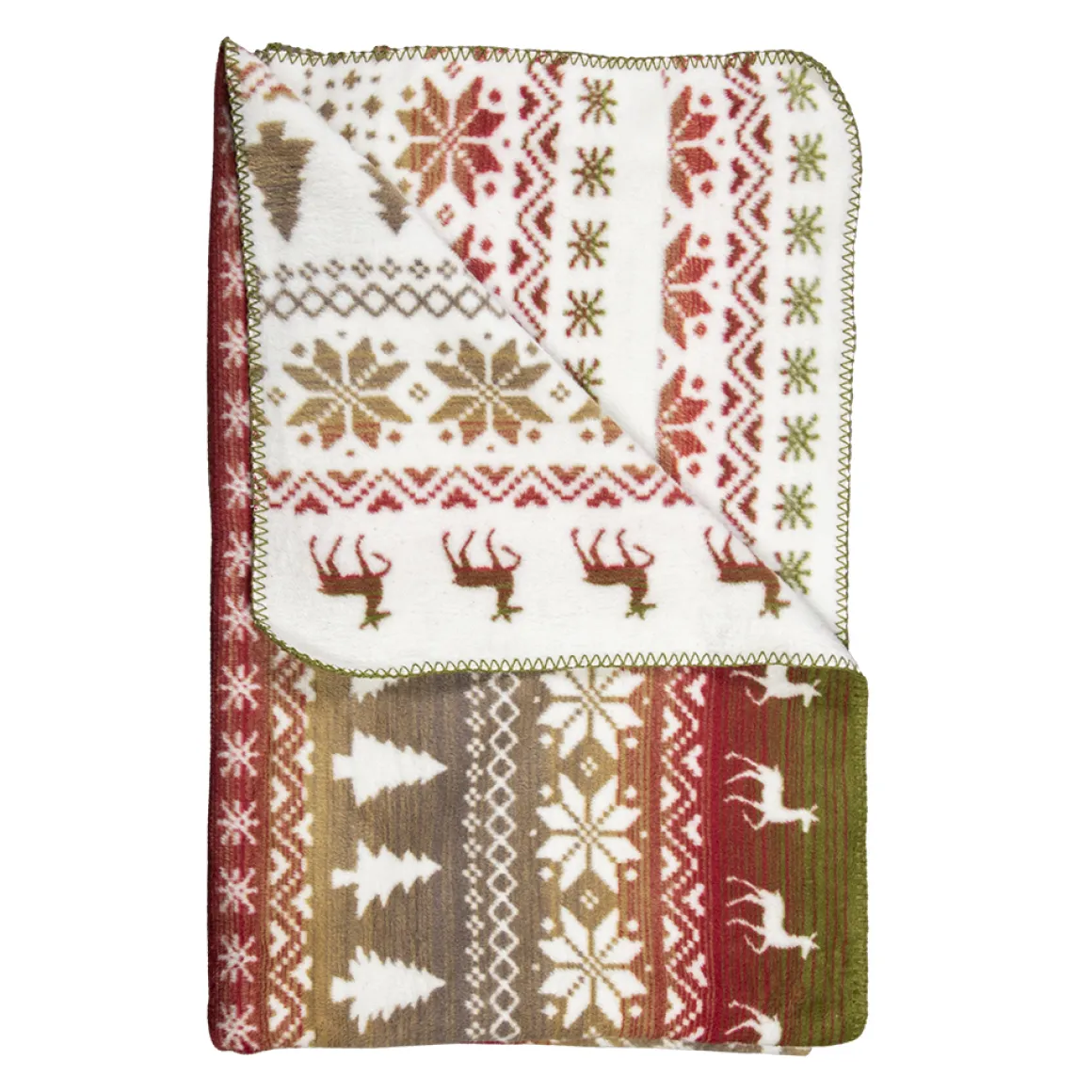 Fleecedecke Nordisch, Wendedecke Plaid Hirsch und Wald rot-grün, 150x200cm, Mars & More