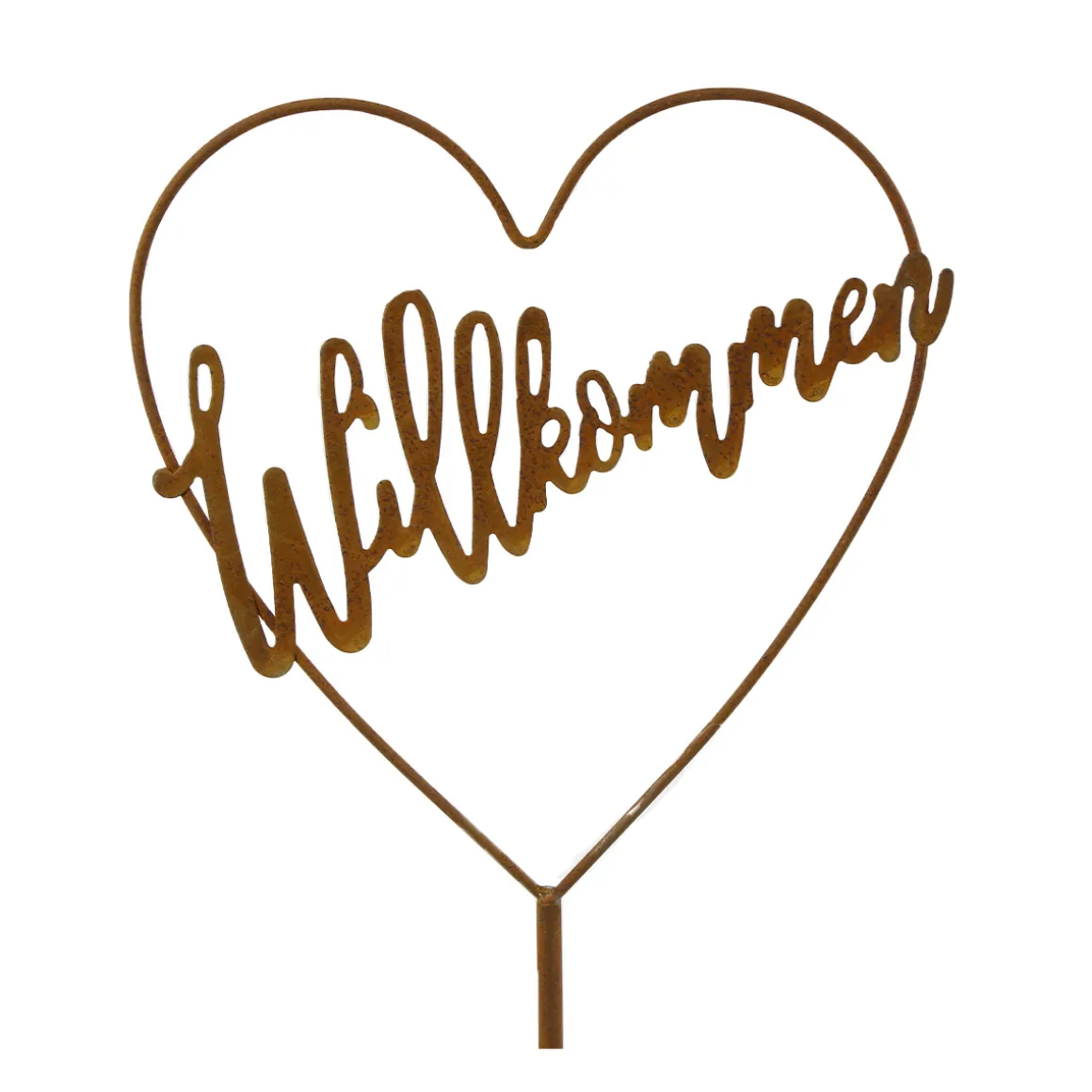 Gartenstecker Herz, Herz mit Willkommen, 20x90cm, Rost