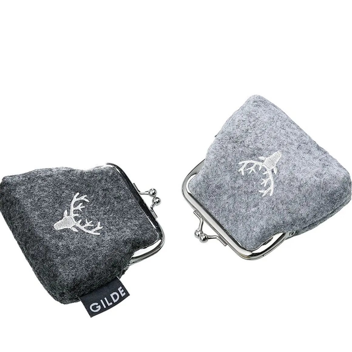 Geldbeutel Hirsch, Portemonnaie aus Filz mit Hirsch, Klippverschluß, helles grau, 10x10cm, Gilde Handwerk