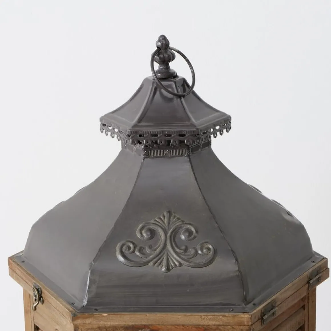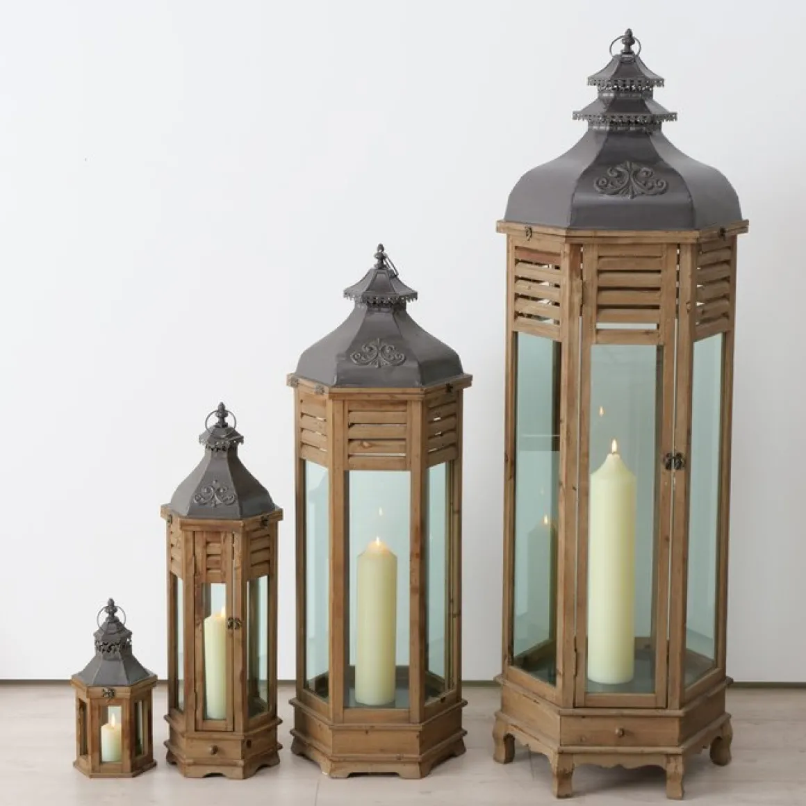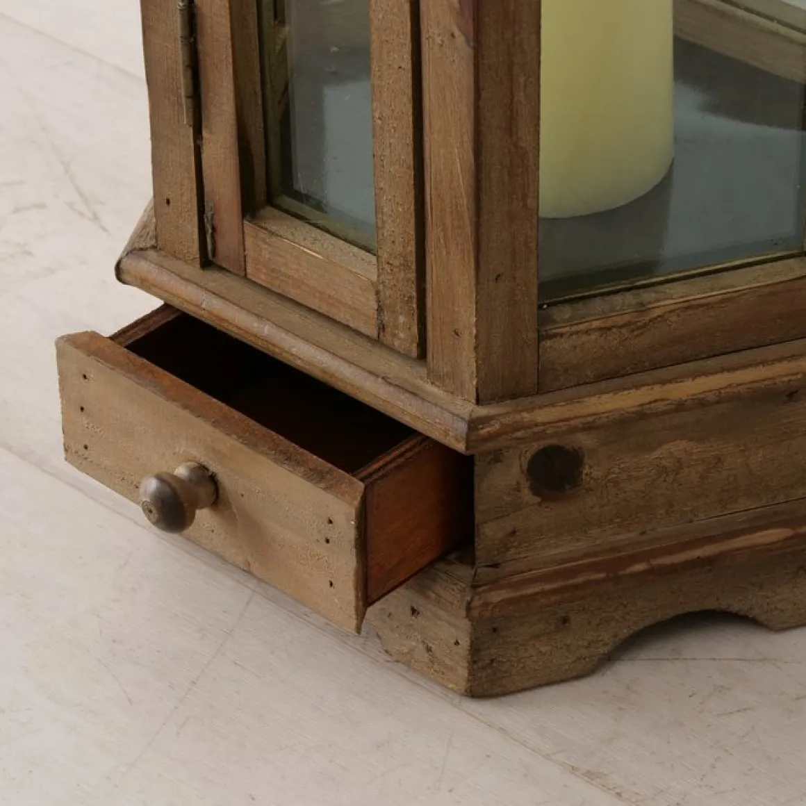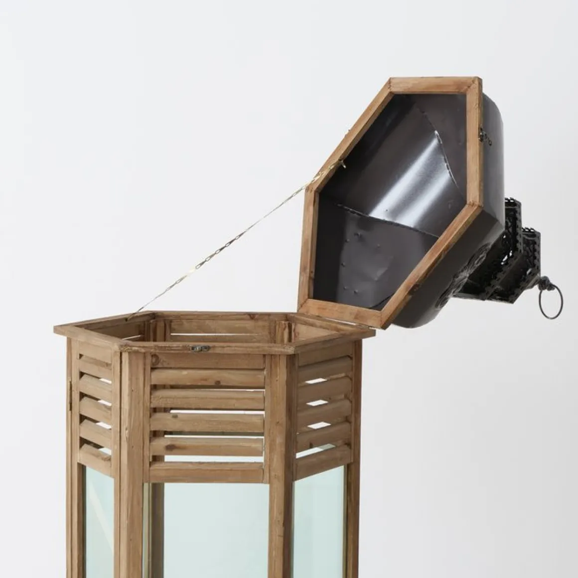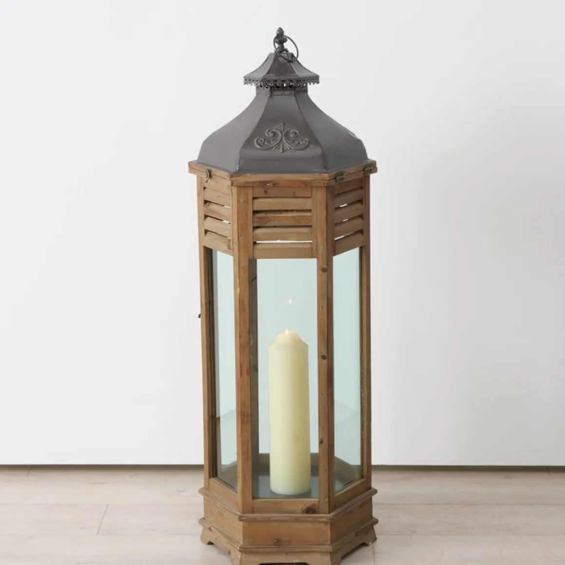 Holz Laterne Hector, lange schmale Holzlaterne mit Schublade und Metalldach, 115x40cm, Boltze Home Collections