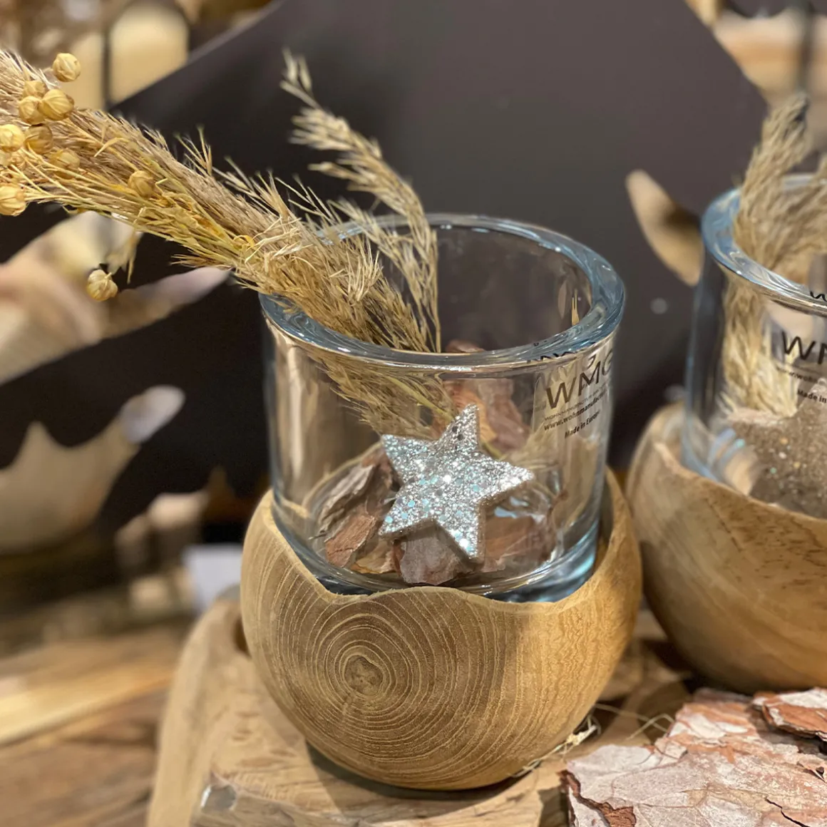 Holz Windlicht Teak, 15cm, WMG Grünberger