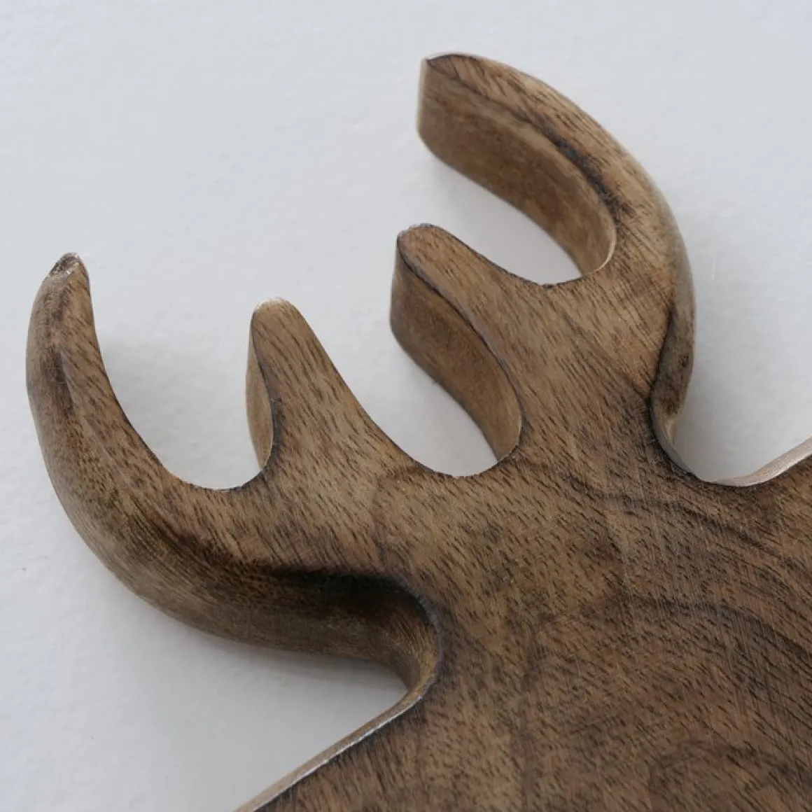 Holzbrett Hirsch Vaasa, Holz Schneidebrett mit Geweih, 22x40cm, Mangoholz, Boltze Home Collections