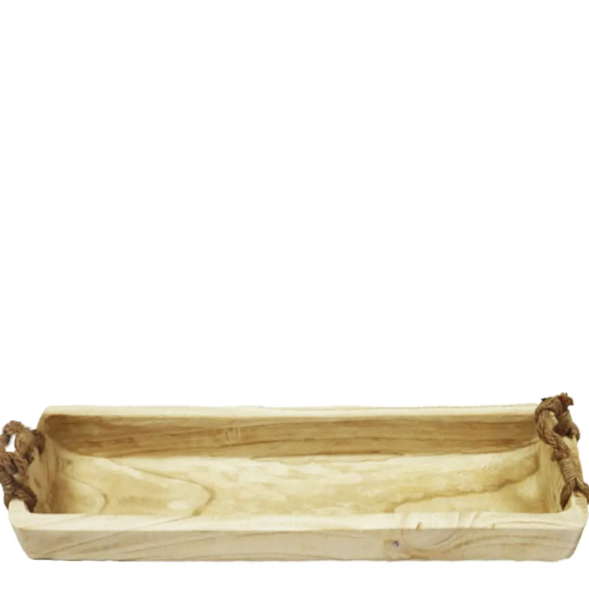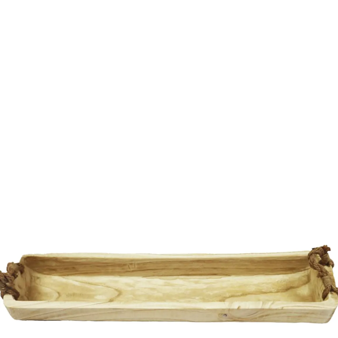 Holzschale Naturholz, Holztablett mit Jutegriff, 58x18cm