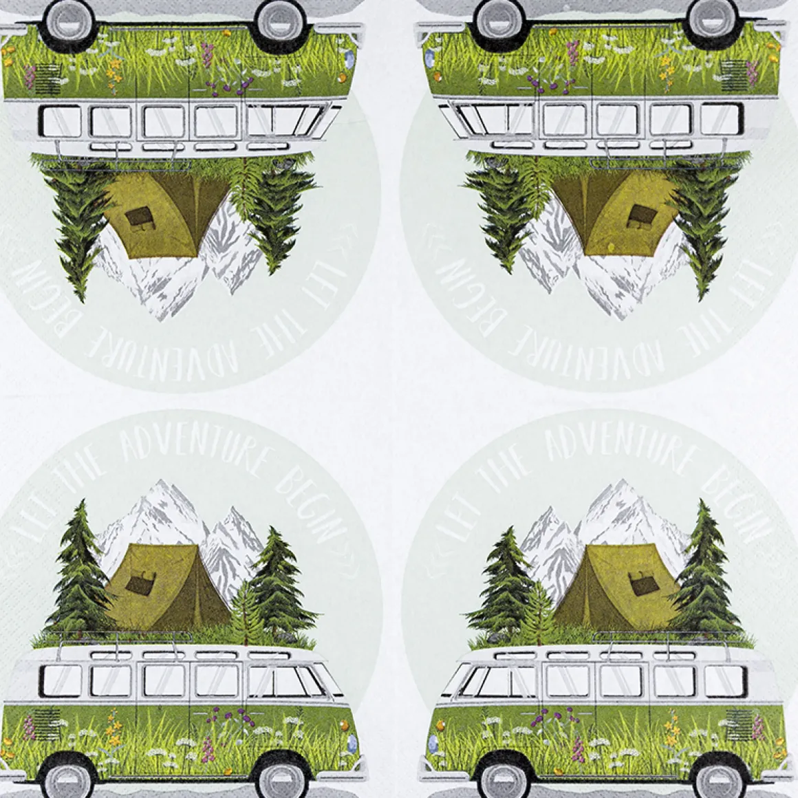 Home Fashion Papierservietten Camping, mit Bus und Zelt ins Gebirge, 33x33cm
