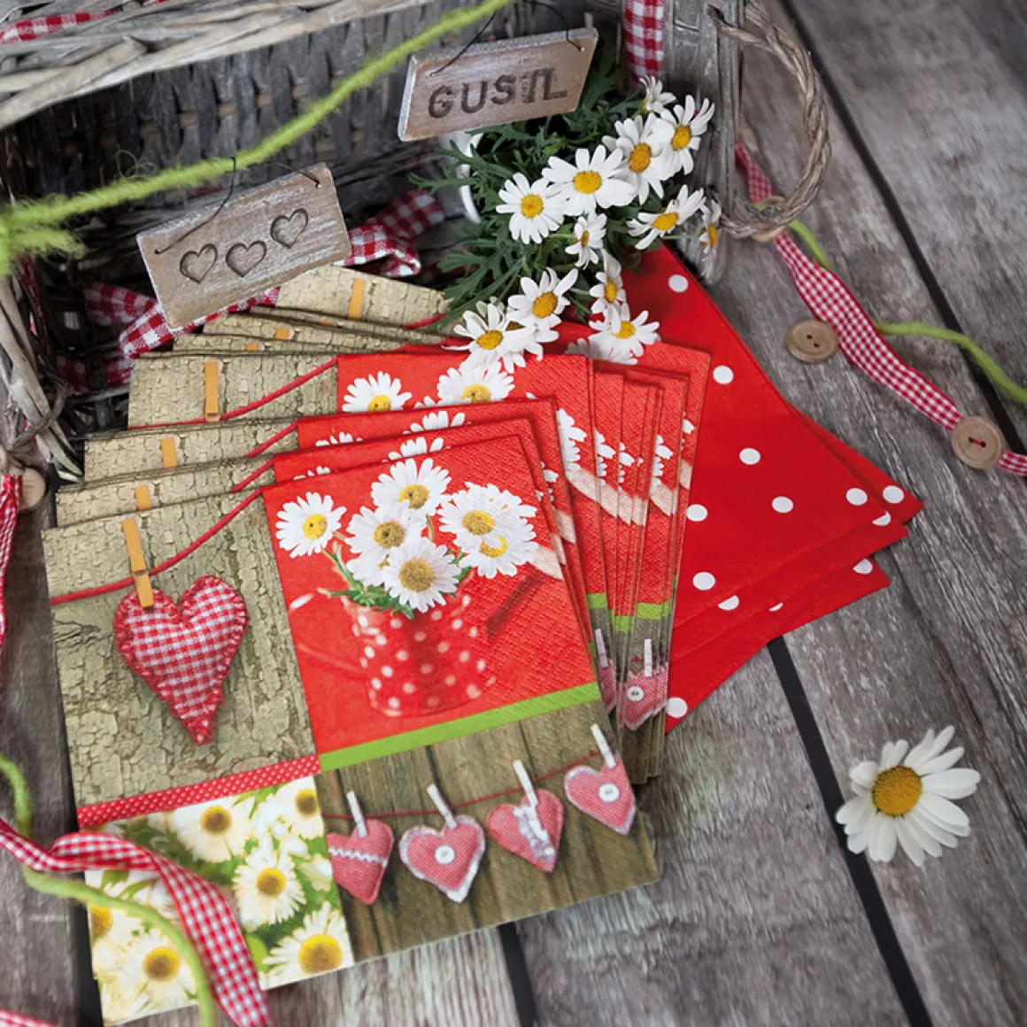 Home Fashion Papierservietten Landhaus, Herzen und Gänseblümchen, 33x33cm