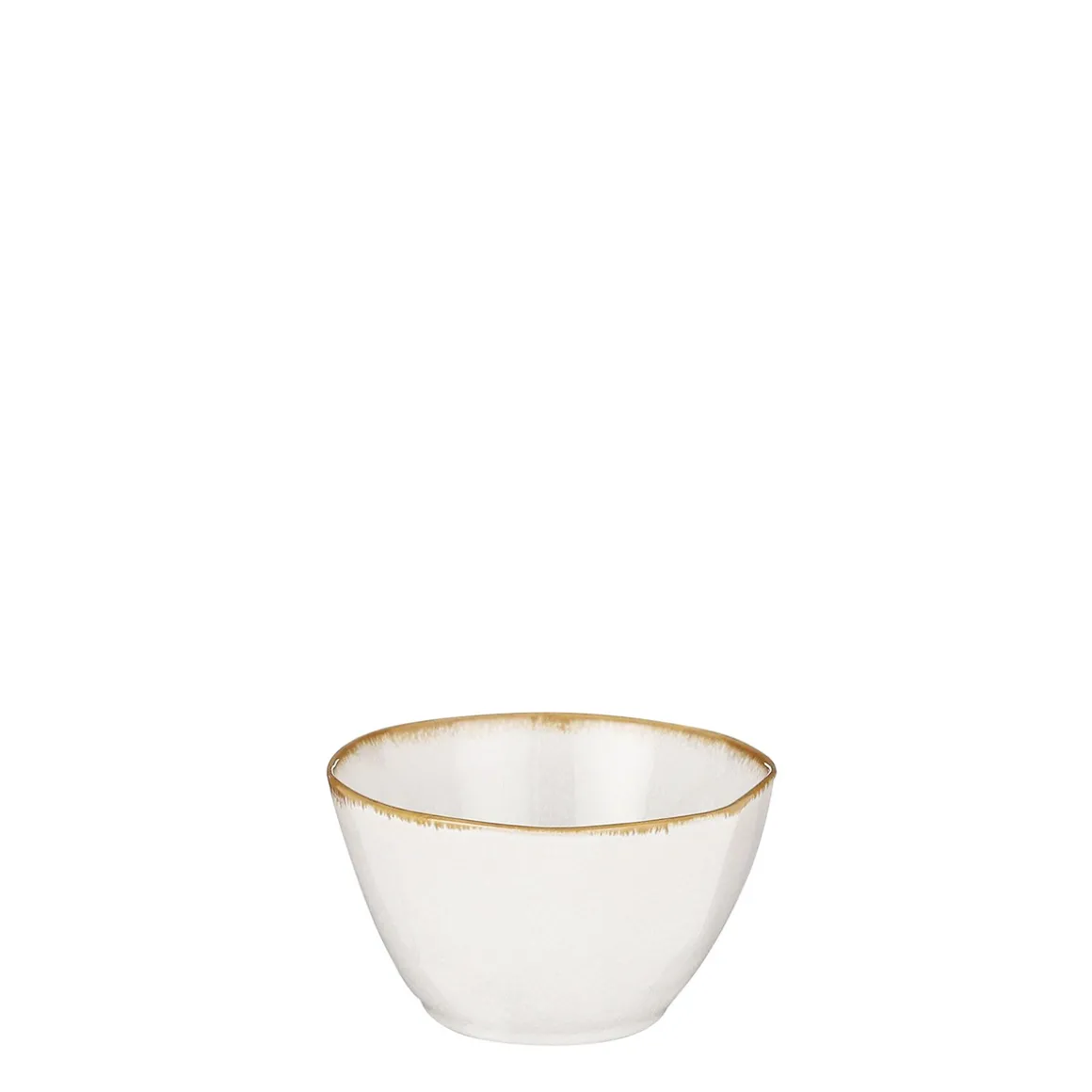 Keramik Schale, Tabo, handgefertigt, weiß, Rand braun, 5x11cm, Mica Decorations