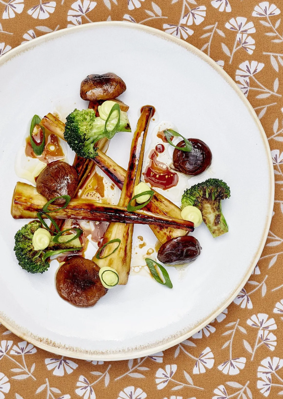 Keramik Speiseteller, Tabo, handgefertigt, weiß, Rand braun, 26,5cm, Mica Decorations