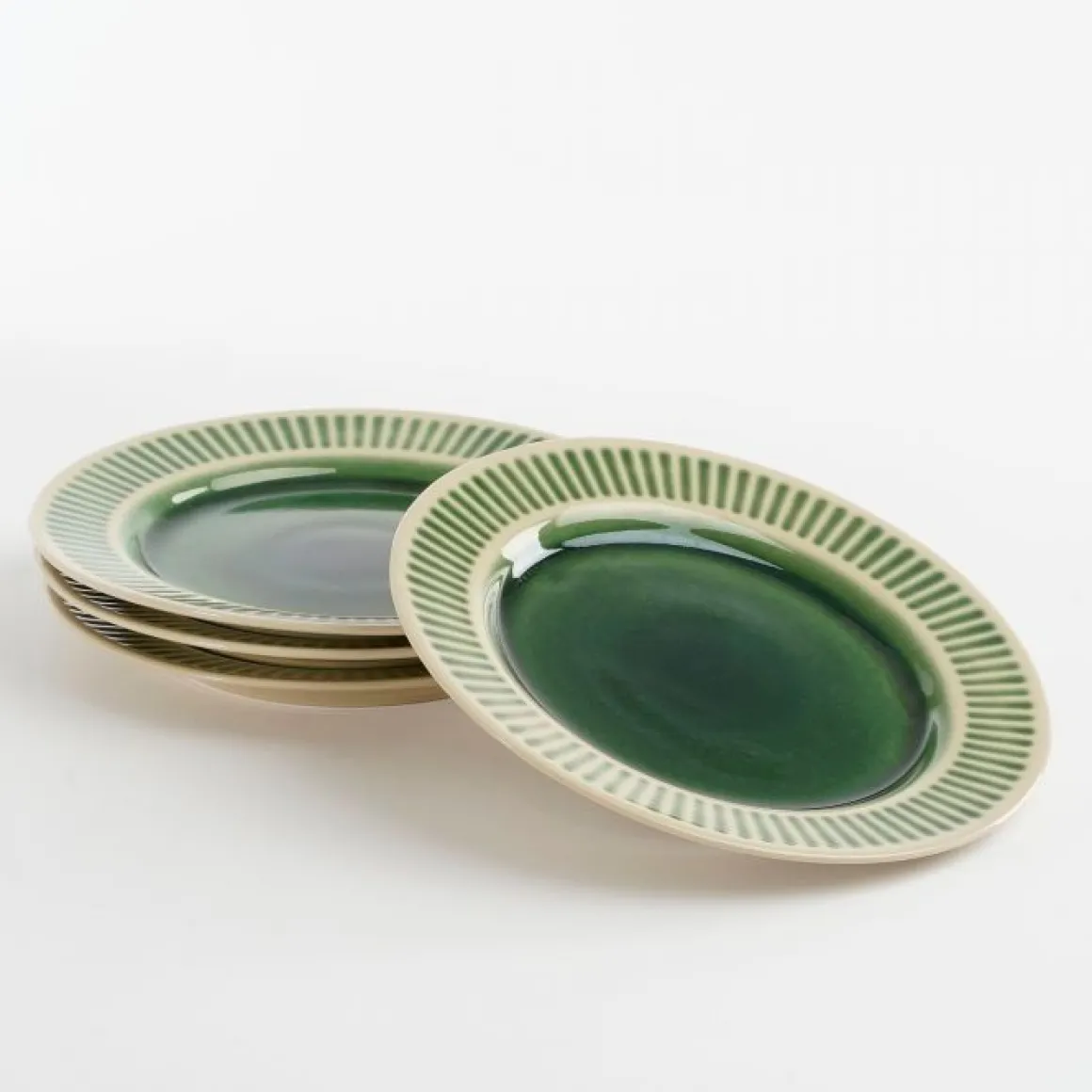Keramik Teller Elice, Frühstücksteller mit Relief, grün-beige, Ø21,5cm, Mica Decorations