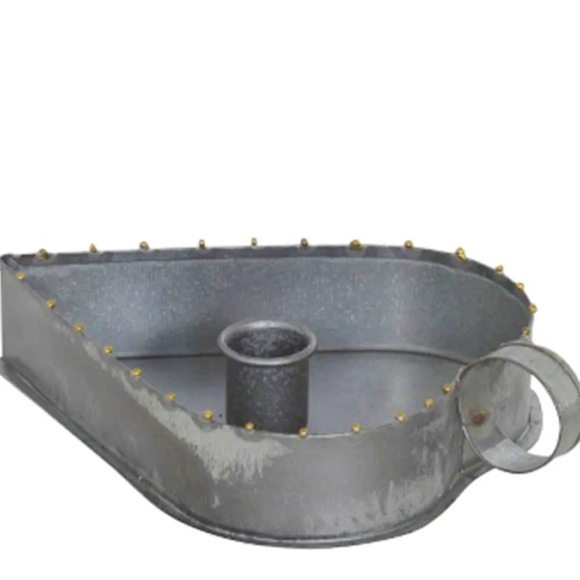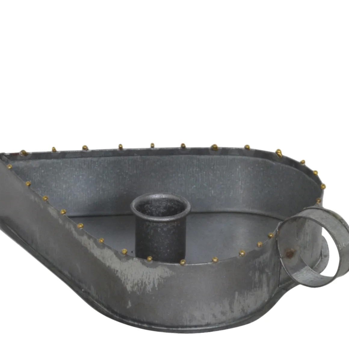 Produktinformationen „Kerzenhalter Herz used look, Zinkschale für Stabkerzen, Kammerleuchte mit Griff, 13x8cm“