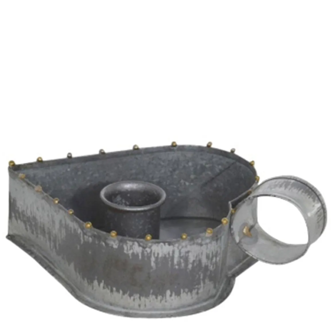 Kerzenhalter Herz used look, Zinkschale für Stabkerzen, Kammerleuchte mit Griff, 15x10cm