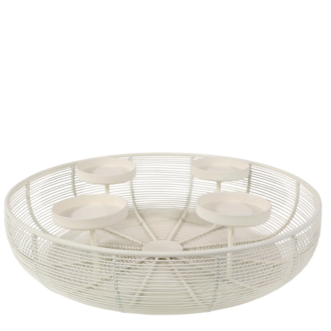 Kerzenhalter Schale, Draht-Advents-Kerzenschale, creme, Ø36cm