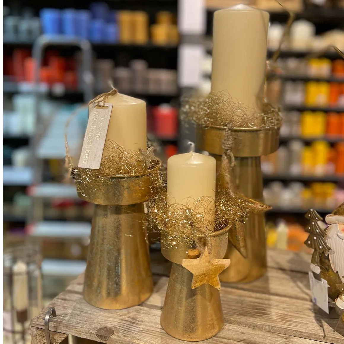 Kerzenhalter Weihnachten Antik, Metallkerzenhalter antik gold used look, 19cm