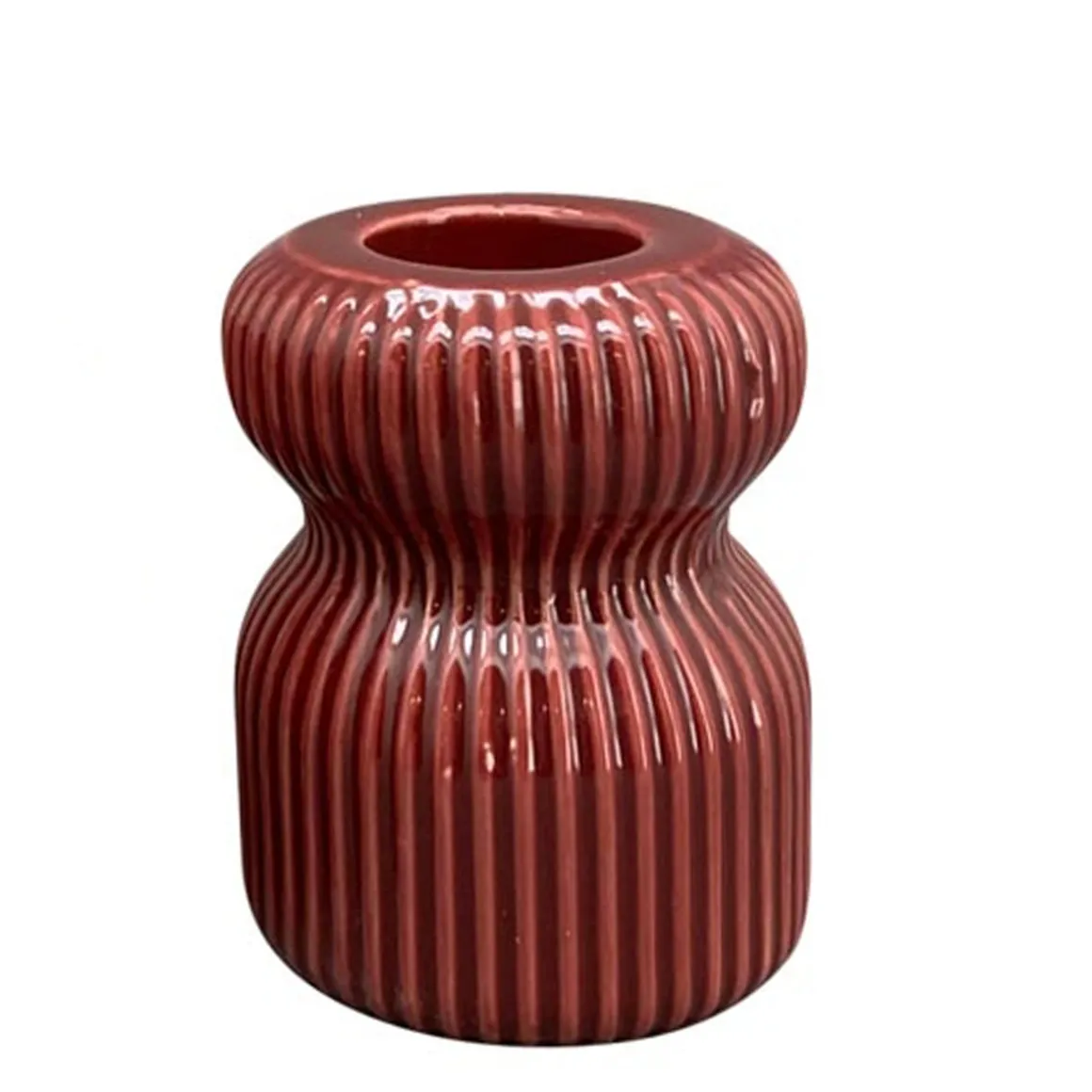 Produktinformationen „Kerzenständer Gent Tailliert, weinroter Kerzenhalter mit vertikaler Riffelung, Stabkerzenhalter aus Porzellan“