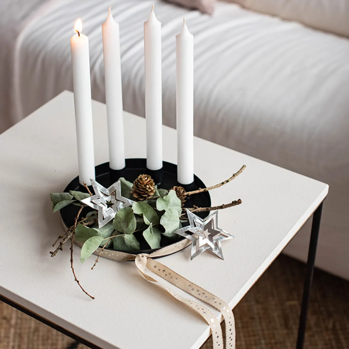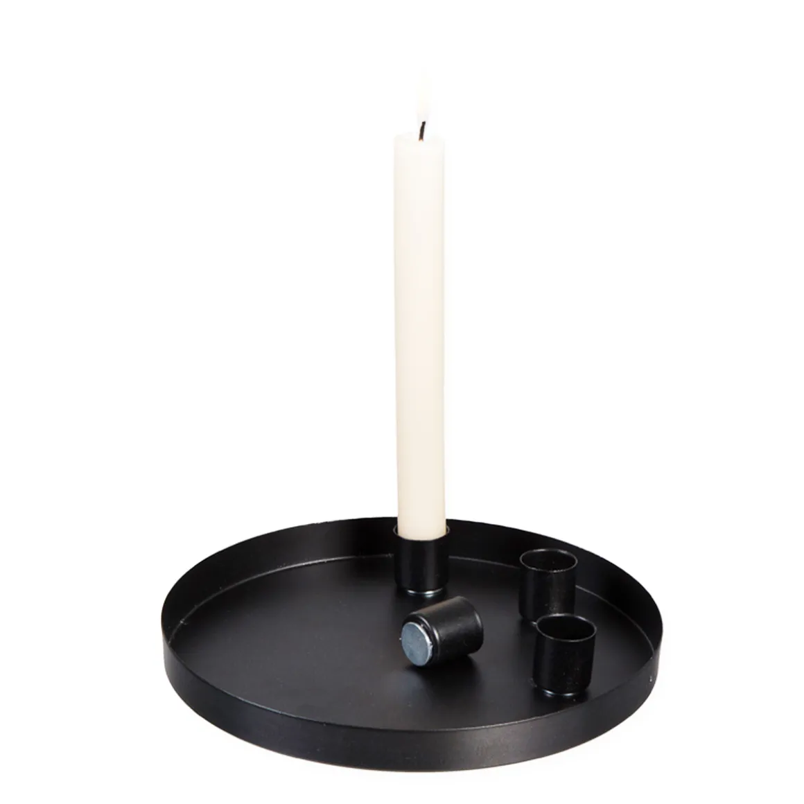 Kerzentablett mit 4 Magnet Kerzenhaltern, schwarz, Ø20cm