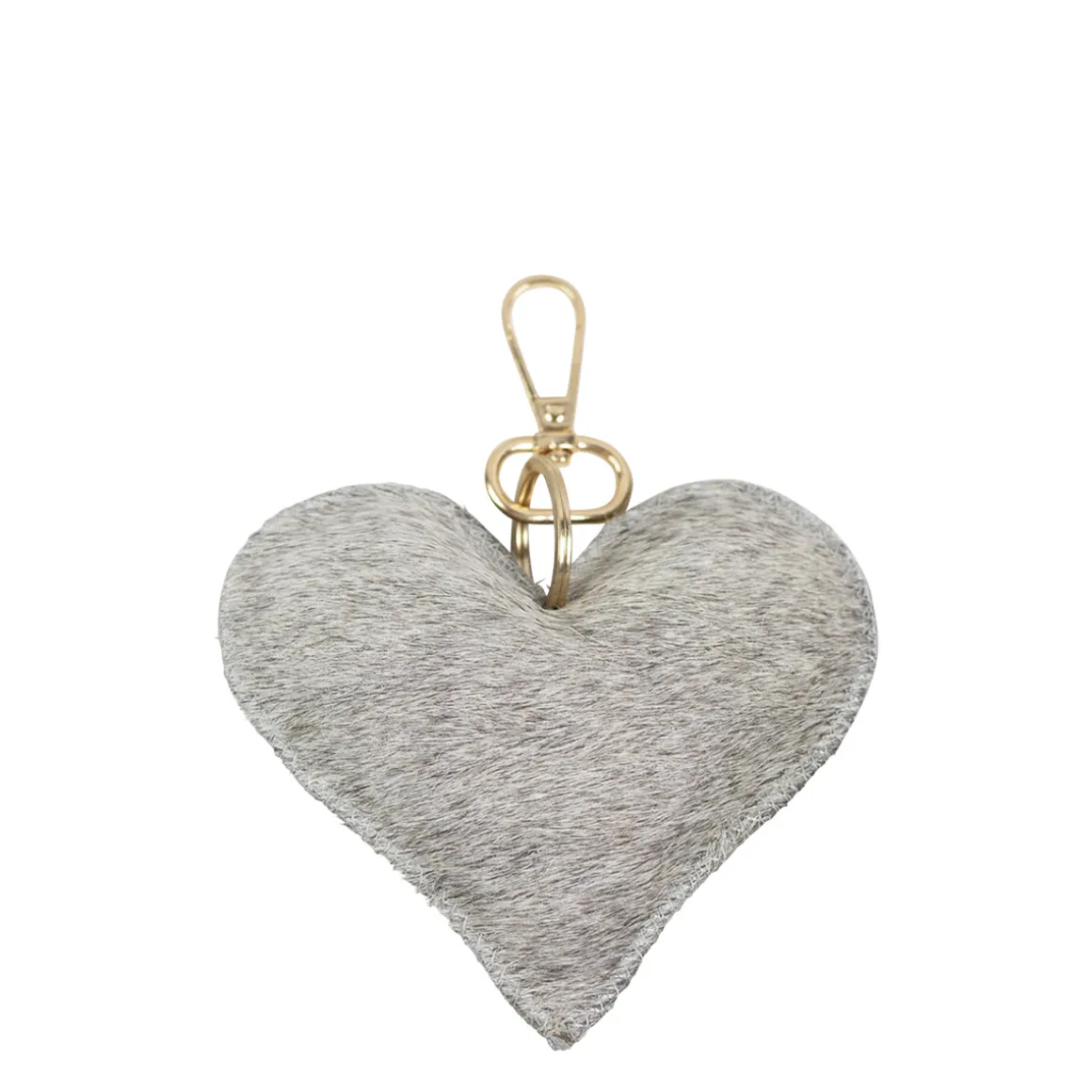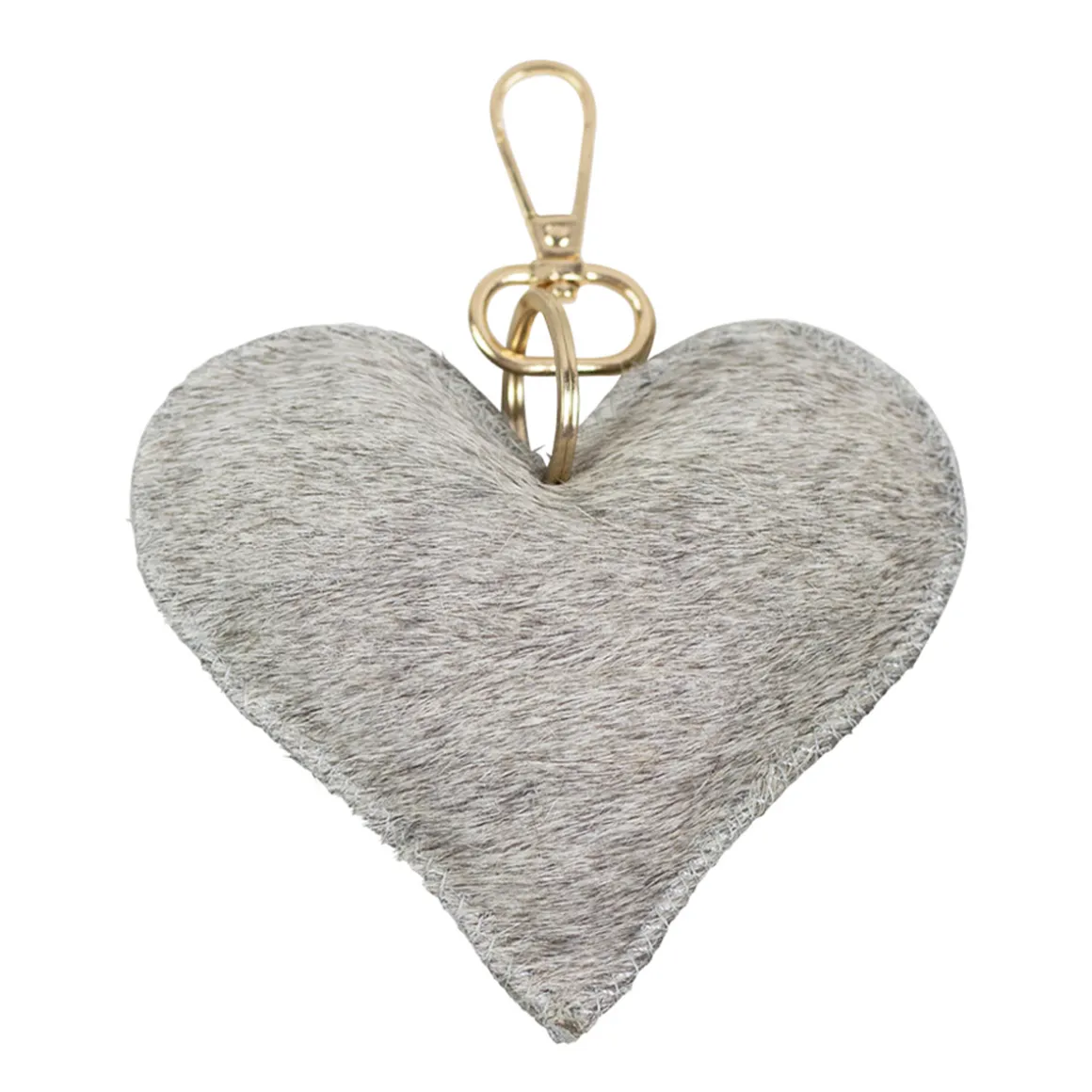 Kuhfell Schlüsselanhänger Herz, Fellherz grau-weiß, 10x11cm, Mars & More