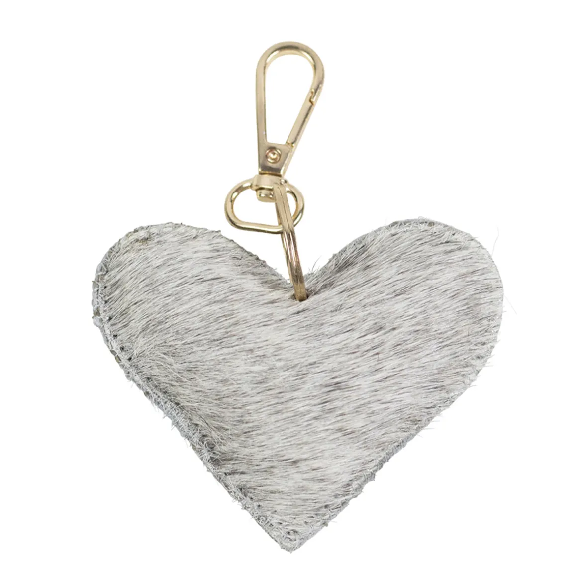 Kuhfell Schlüsselanhänger Herz, Fellherz grau-weiß, 9x8cm, Mars & More