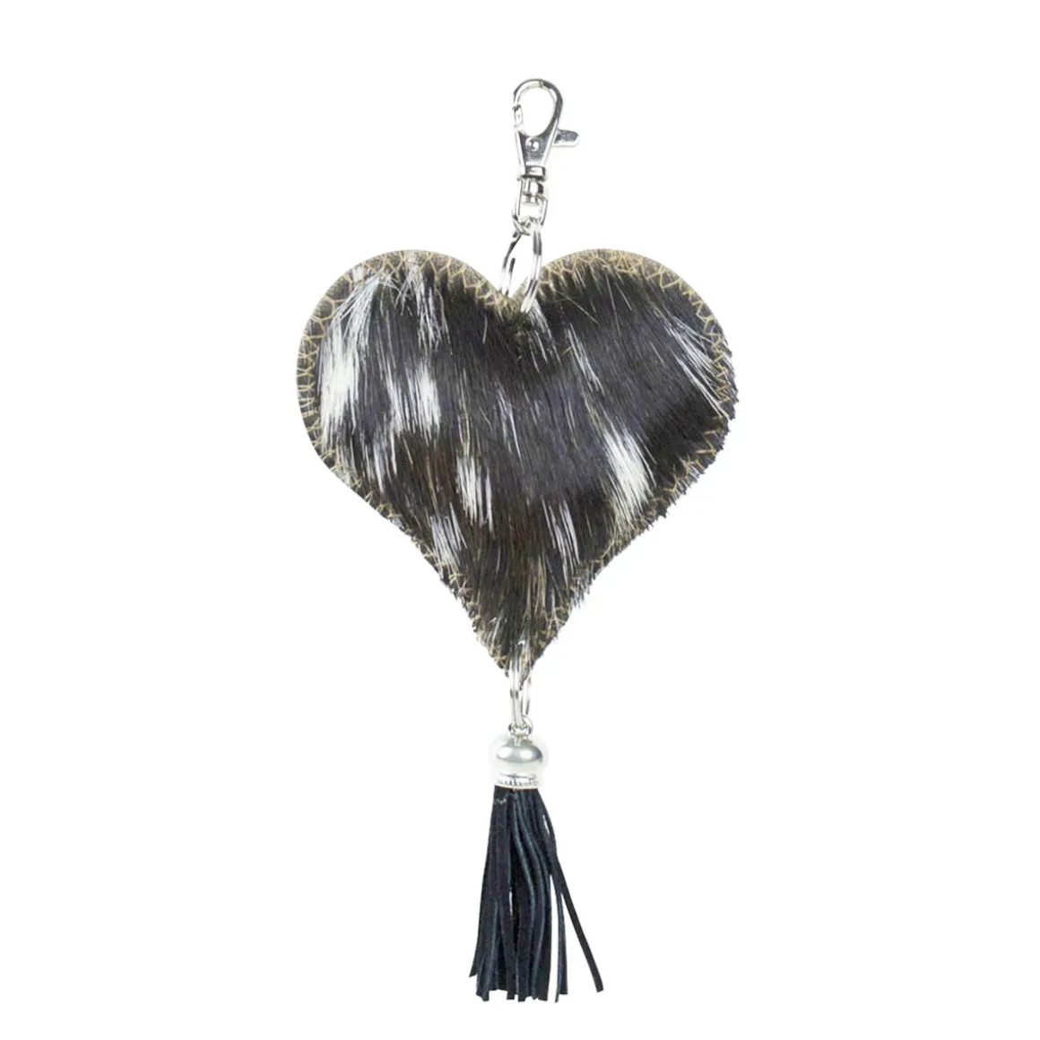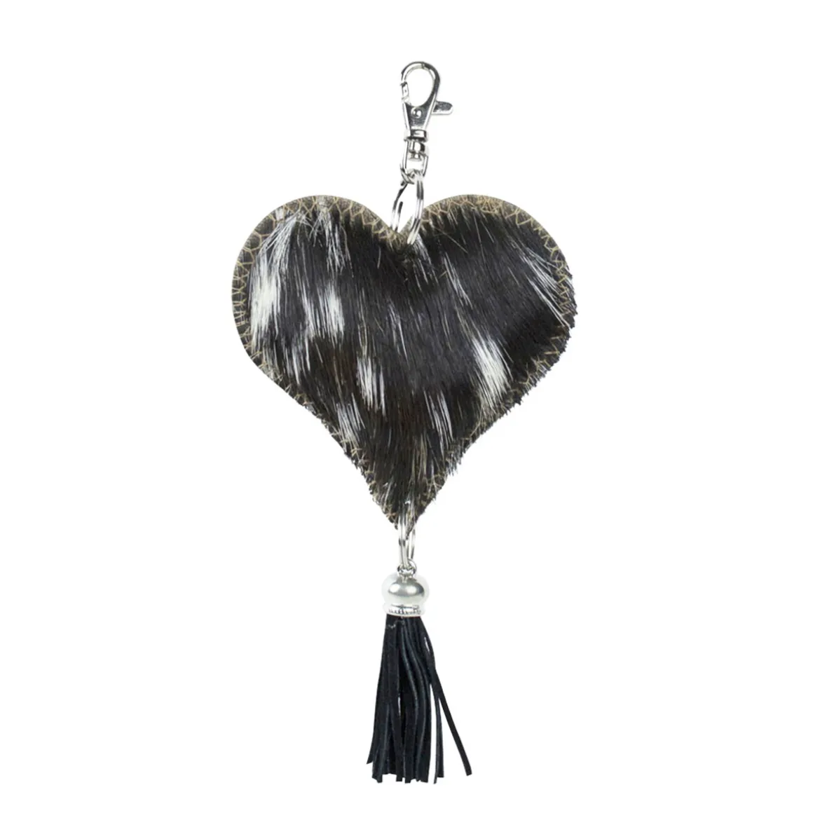 Kuhfell Schlüsselanhänger Herz mit Qaste, Fellherz schwarz-weiß, 10x10cm, Mars & More