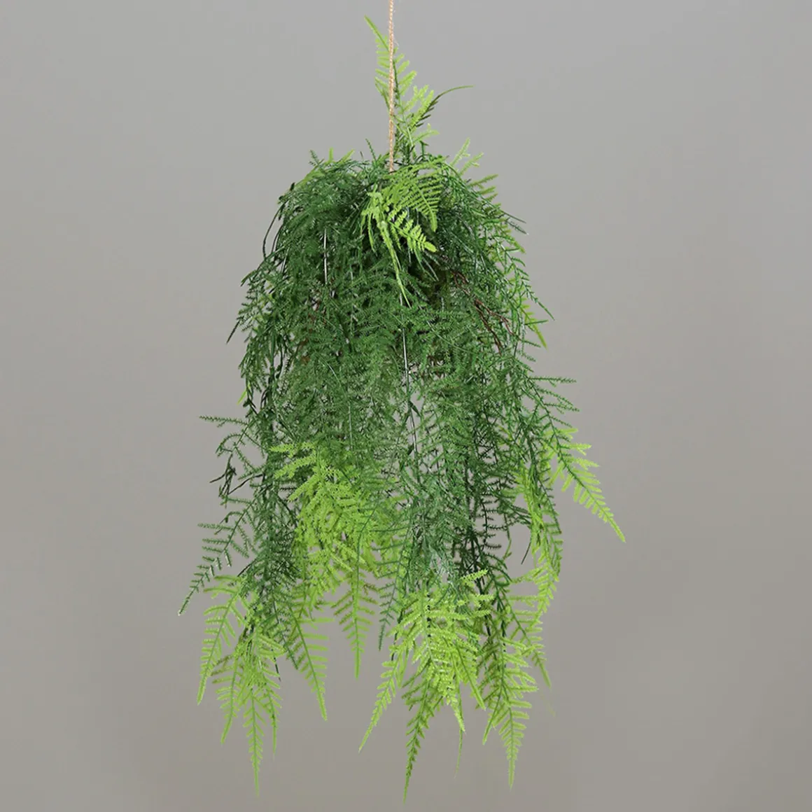 Kunstpflanze Farn, Farnball zum Hängen, hell und dunkelgrün, 52cm