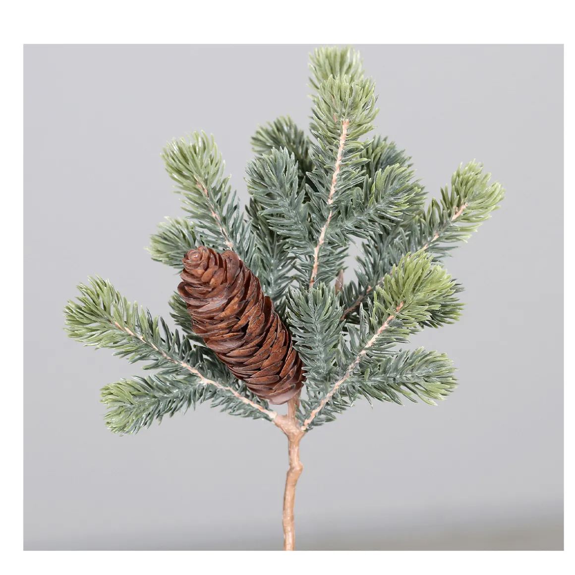 Kunstpflanze Tannenzweig, Tannenpick mit 1 Zapfen, 24cm, DPI