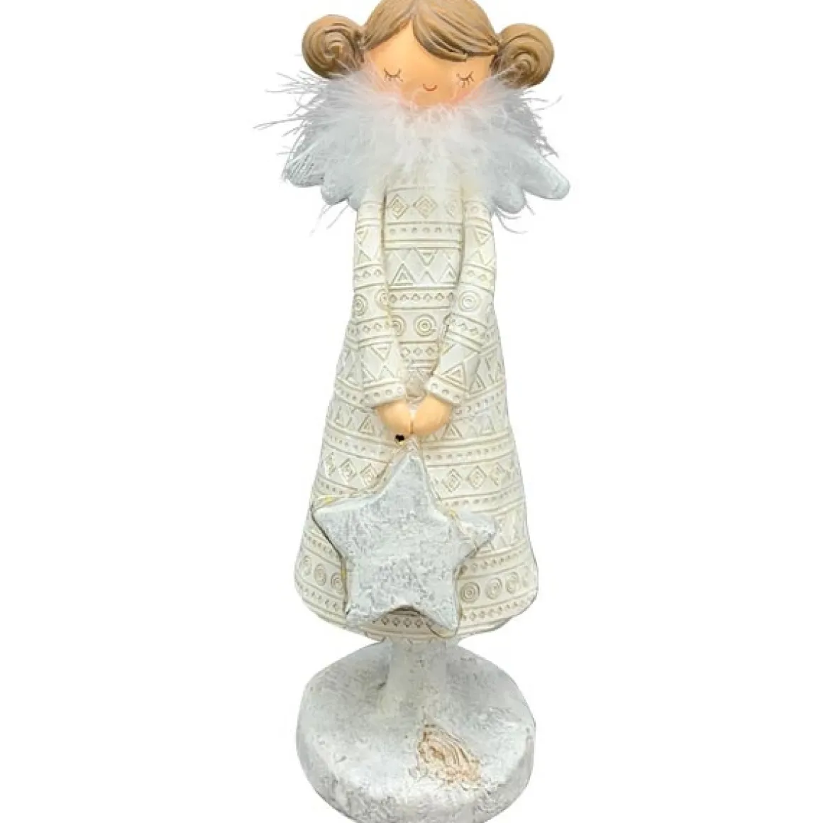 LED Engel mit Stern, schlanker Weihnachtsengel mit Federboa und Stern, 29cm