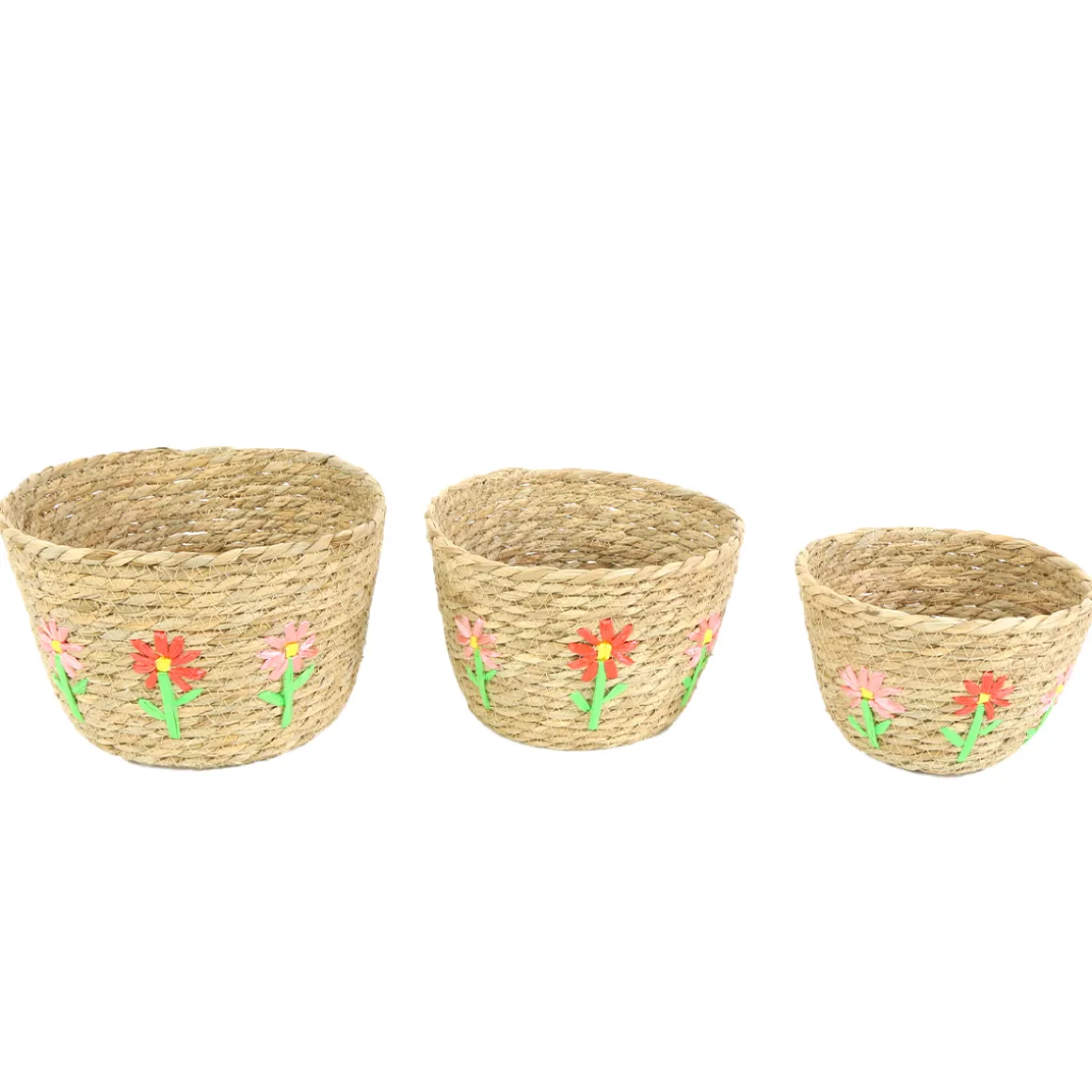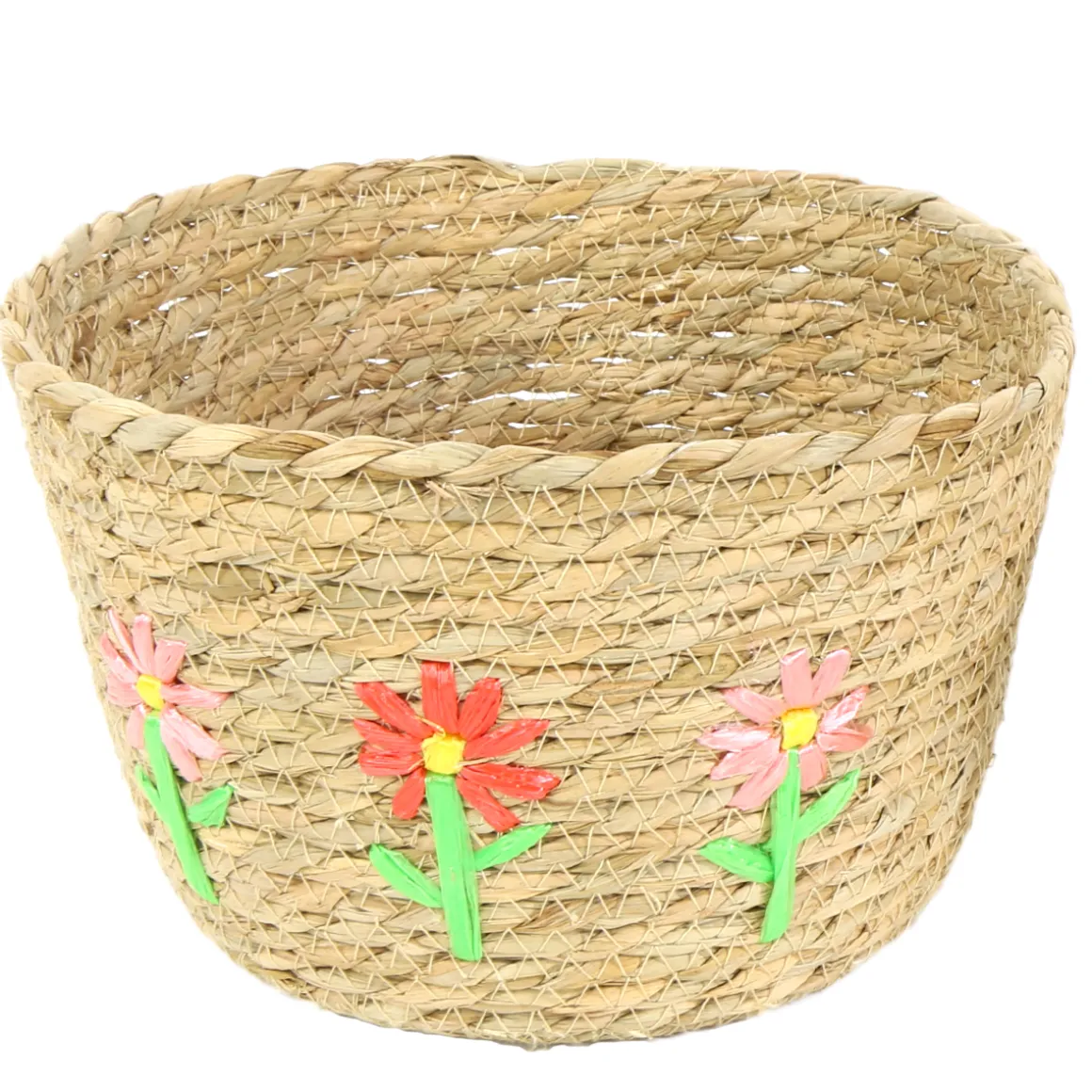 Pflanzkorb Seegras mit Blumen, Übertopf natur mit Blumen, 22x15cm, Naturkorb