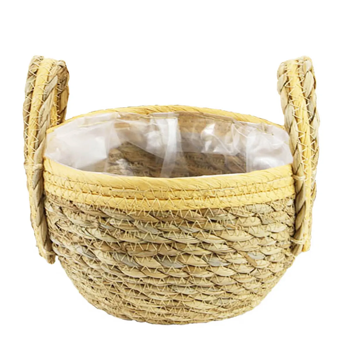 Pflanzkorb Seegras natur-helles orange, Übertopf mit Henkel, Naturkorb mit Folie ausgekleidet, 18x25cm