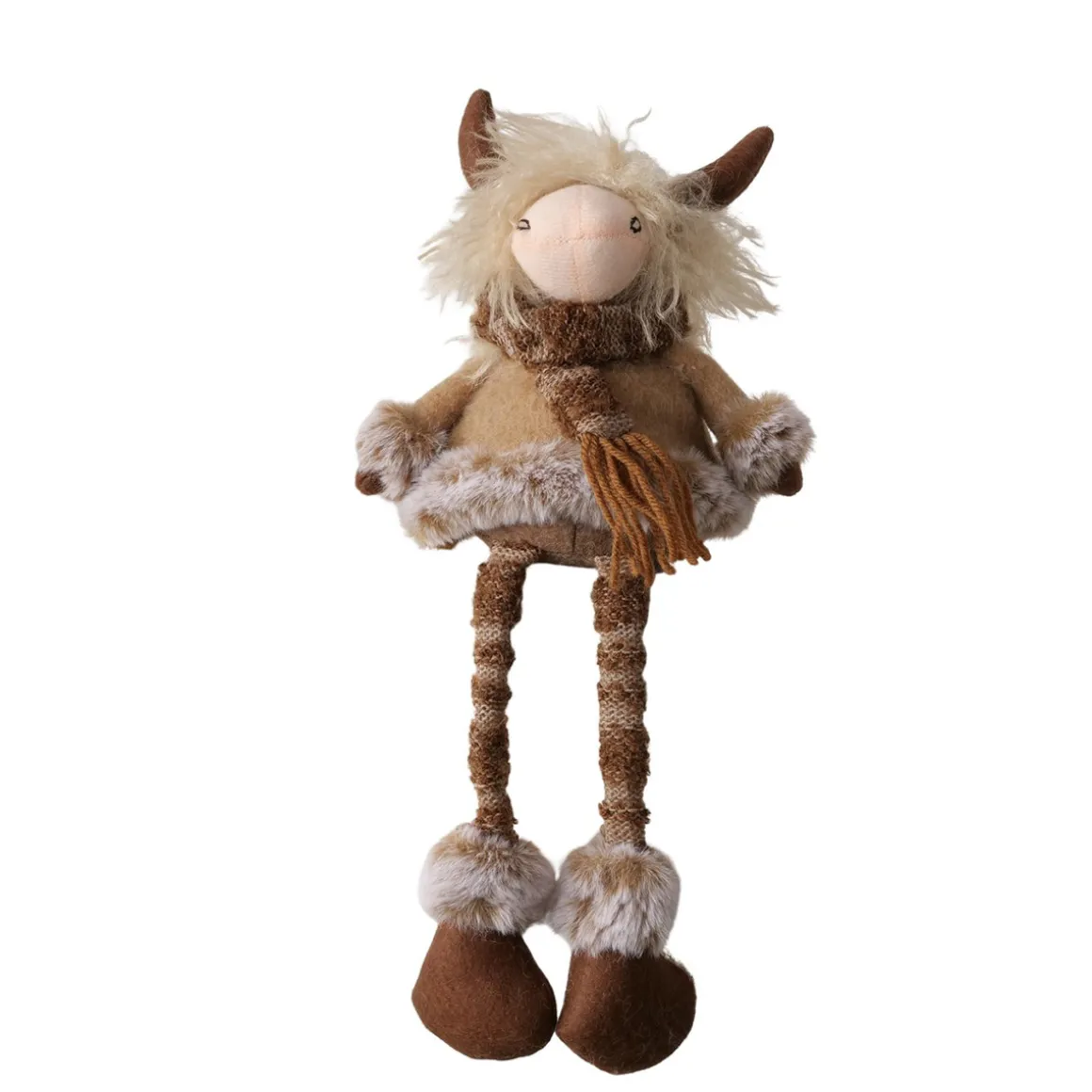 Plüsch Hochlandrind Buffy, Kantenhocker, kleiner brauner Büffeljunge mit Schlackerbeine, Boltze Home Collection