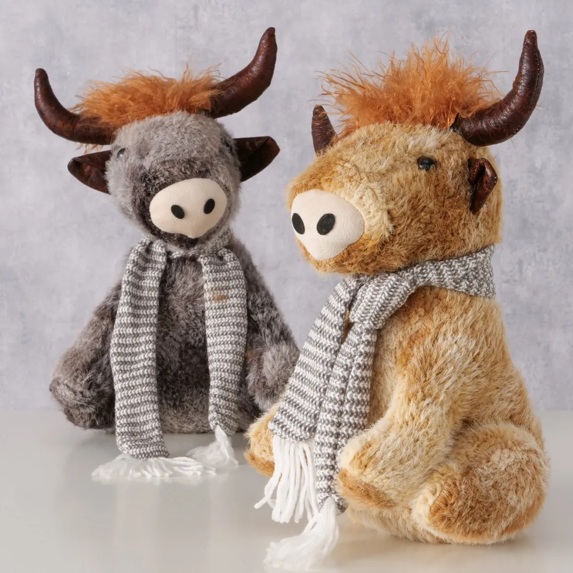 Plüsch Hochlandrind Buffy, Türstopper, kleiner brauner Büffel sitzend, 37cm, Boltze Home Collection