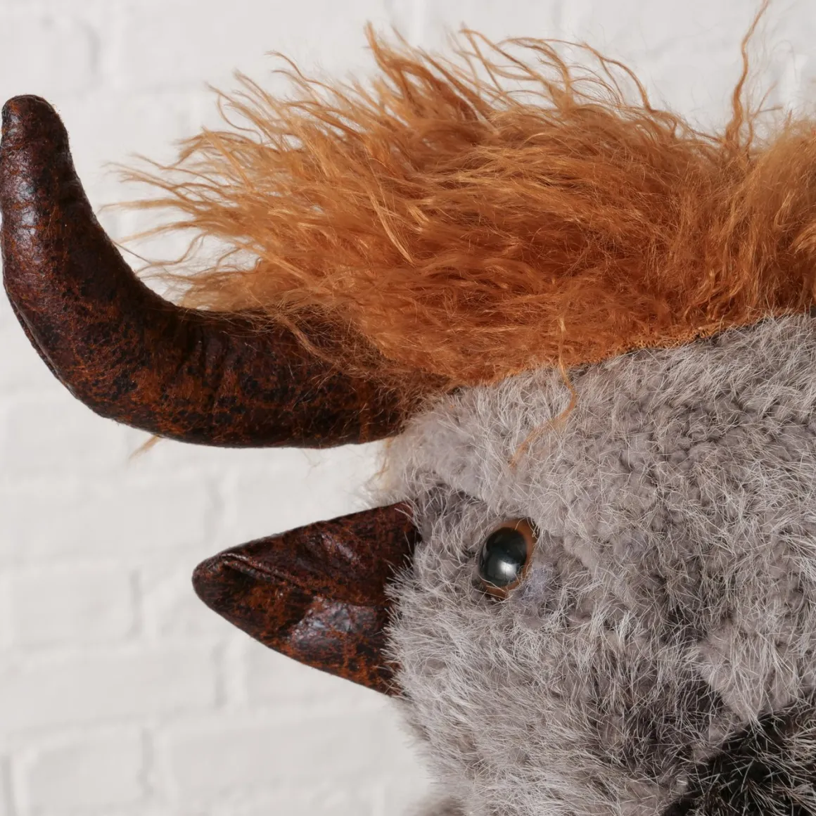 Plüsch Hochlandrind Buffy, Türstopper, kleiner grauer Büffel sitzend, 37cm, Boltze Home Collection