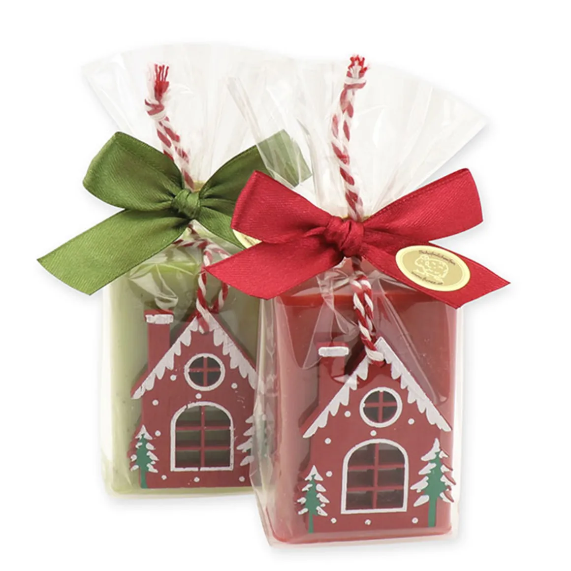 Das niedliche Häuschen-Motiv – wahlweise in Rot oder Grün – macht die Seife zu einem echten Hingucker und passt perfekt in die Advents- und Weihnachtszeit.