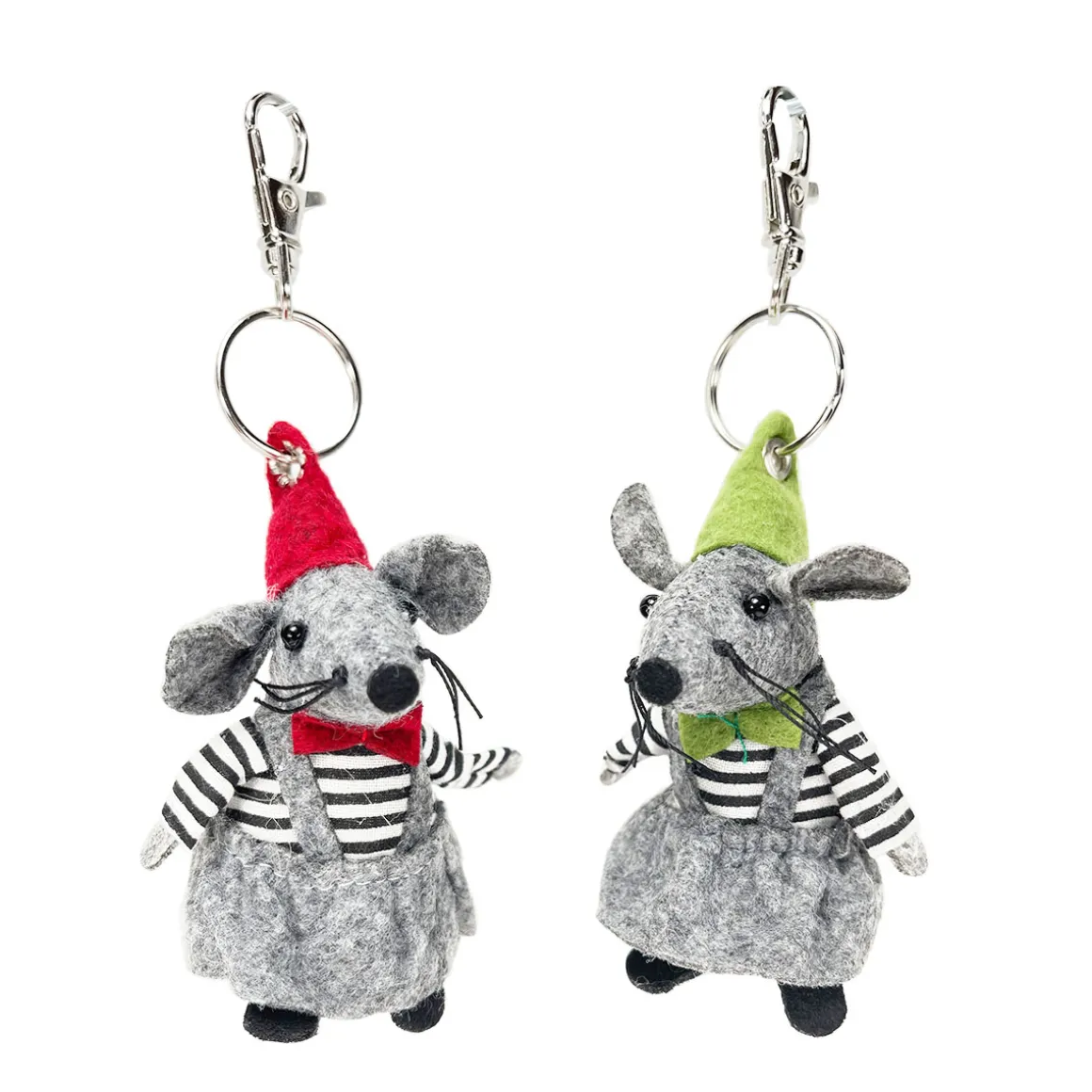 Schlüsselanhänger Filzmaus, Wichtel Mäuse Sofia + Giulia, rot+grün, 8cm, Set/2