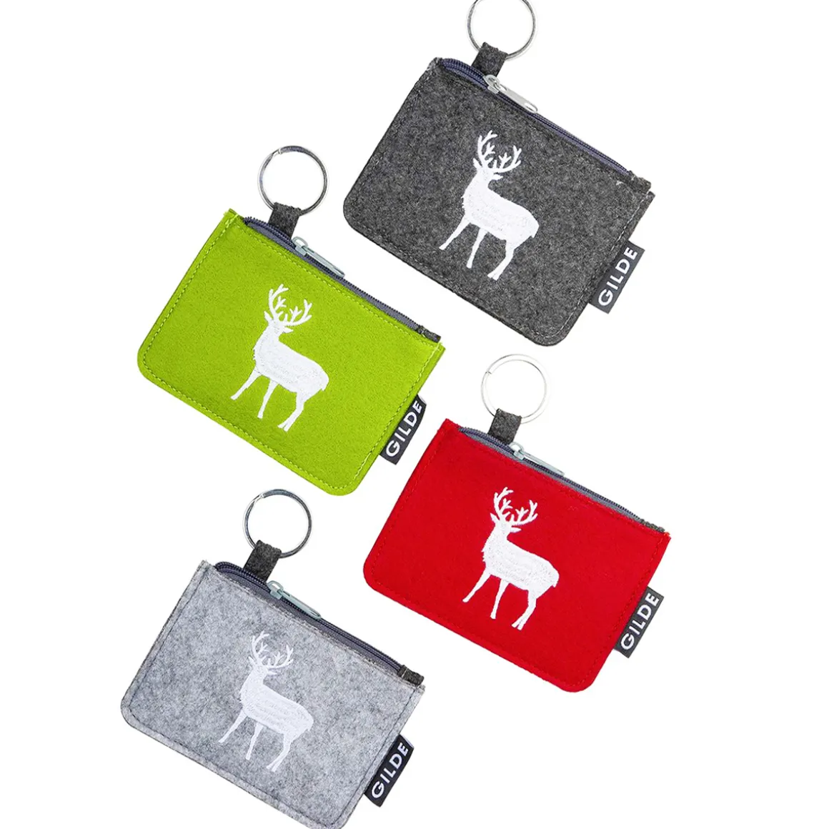 Schlüsselanhänger Hirsch, Filztasche mit Reißverschluß, Hirschmotiv , rot, gün, oder grau, 11cm, Gilde Handwerk