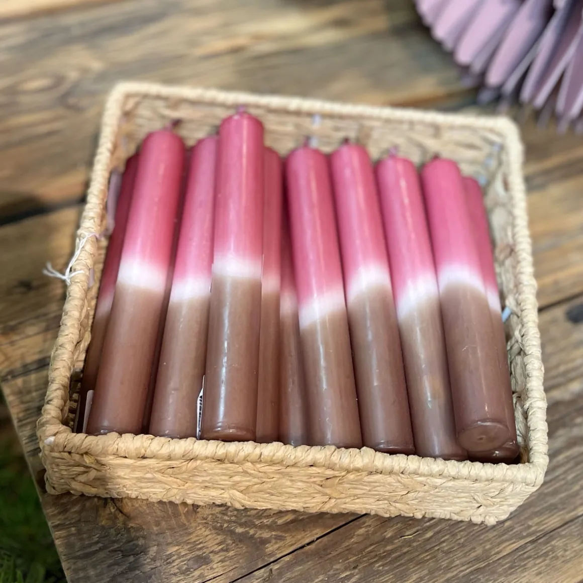 Stabkerze Dip-Dye, altrosa-taupe, Wachskerze, 180x22mm, Kerzenfarm Hahn