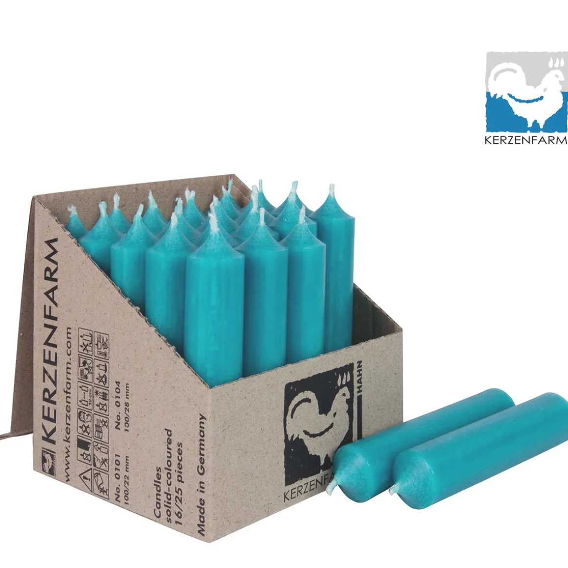Stabkerze türkis rustikal, Wachskerze, 100x22mm, Kerzenfarm Hahn