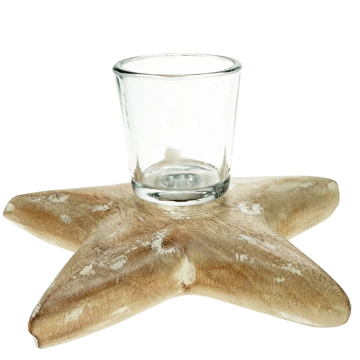 Teelichthalter Stern used look, natur/weiß, 18cm