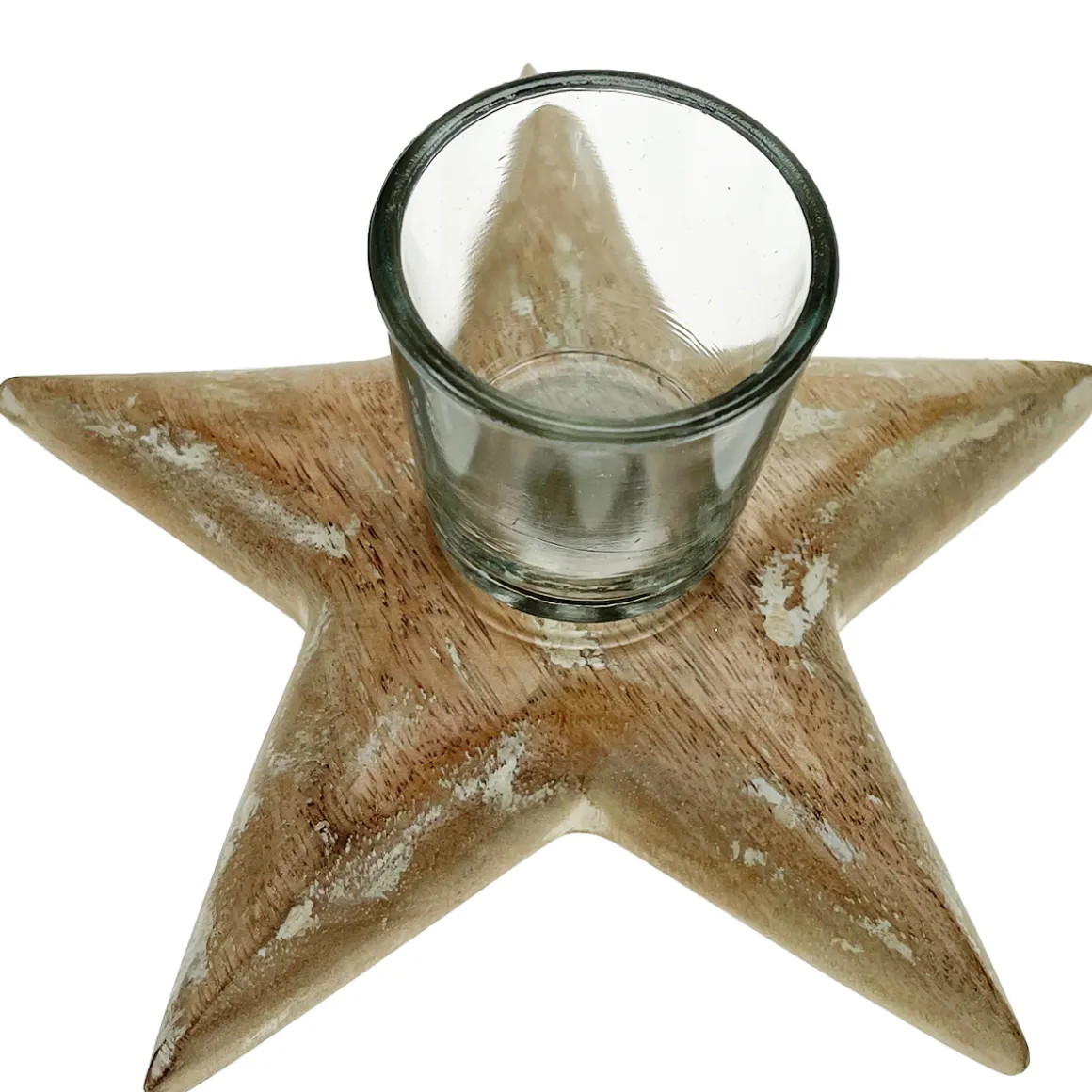 Produktinformationen „Teelichthalter Stern used look natur/weiß 18cm“