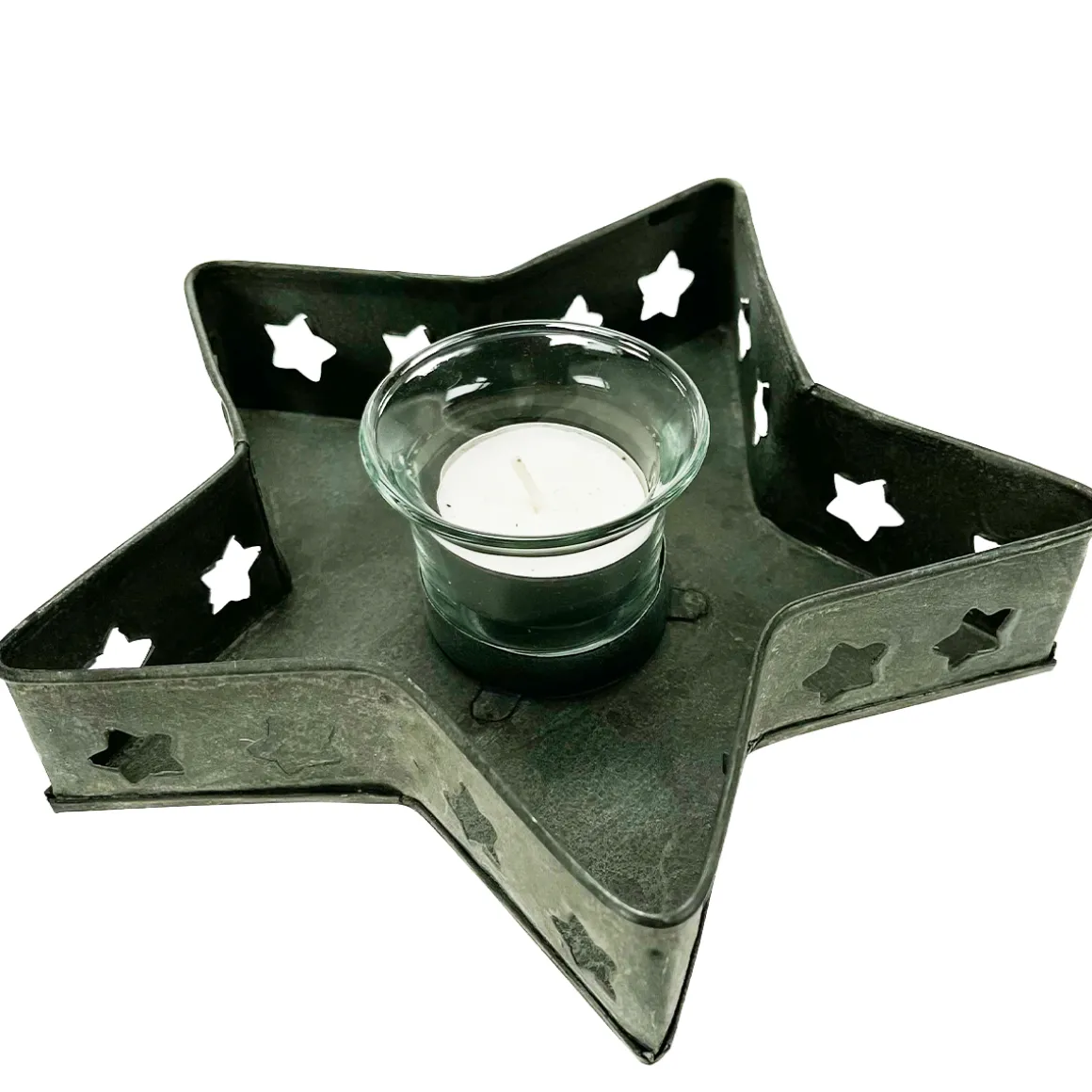 Produktinformationen „Teelichthalter Weihnachten grau used look, Zinkstern, Zinkschale mit Sterne“