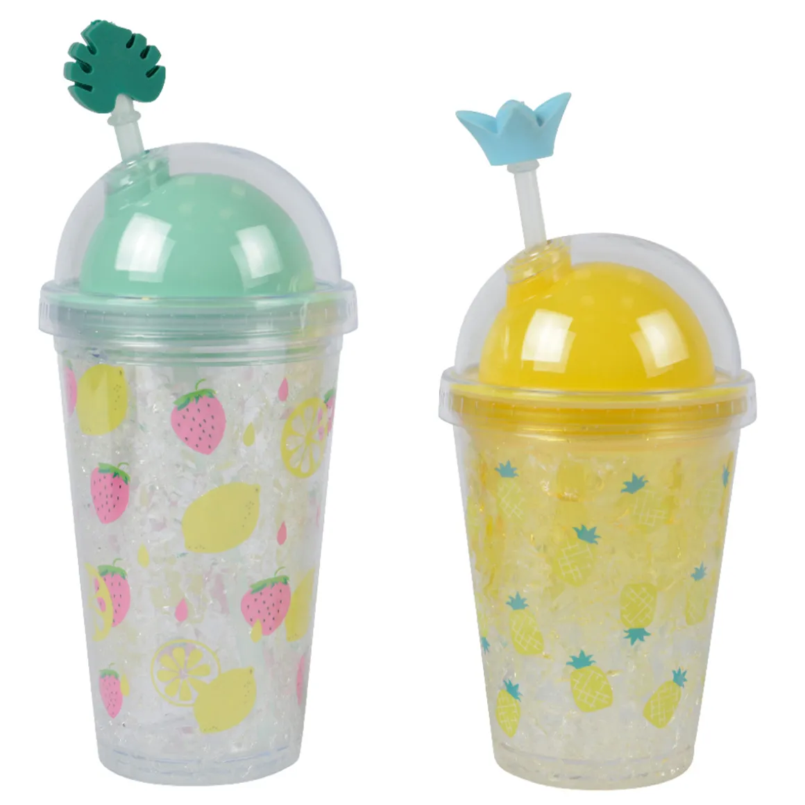 Trinkbecher Space türkis, Erdbeeren und Zitronen, 17x10cm, Kunststoff