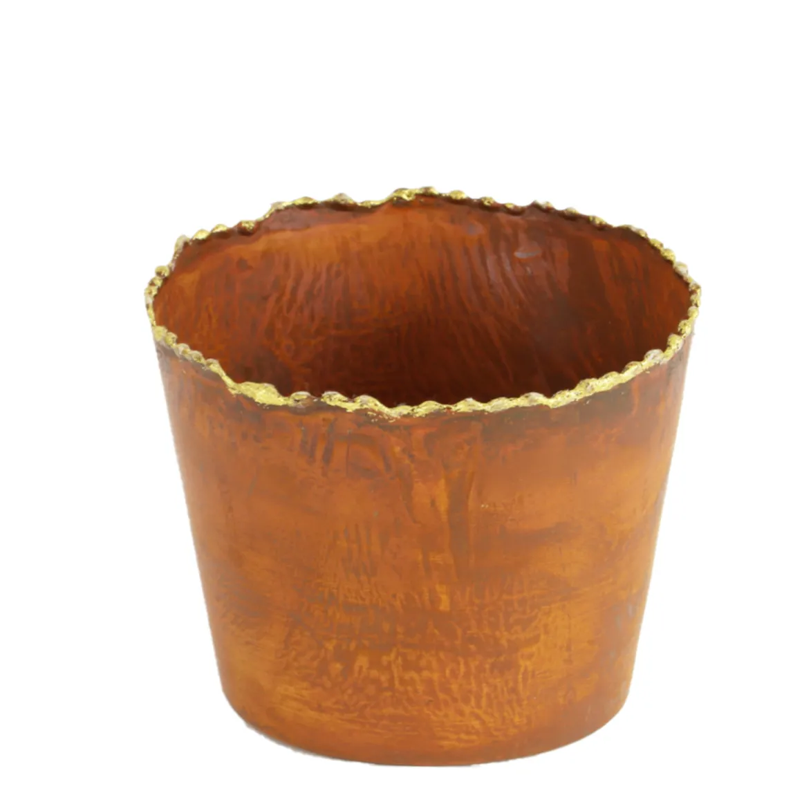 Übertopf Rost mit Goldrand, Pflanztopf Edelrost used look, 9x10cm