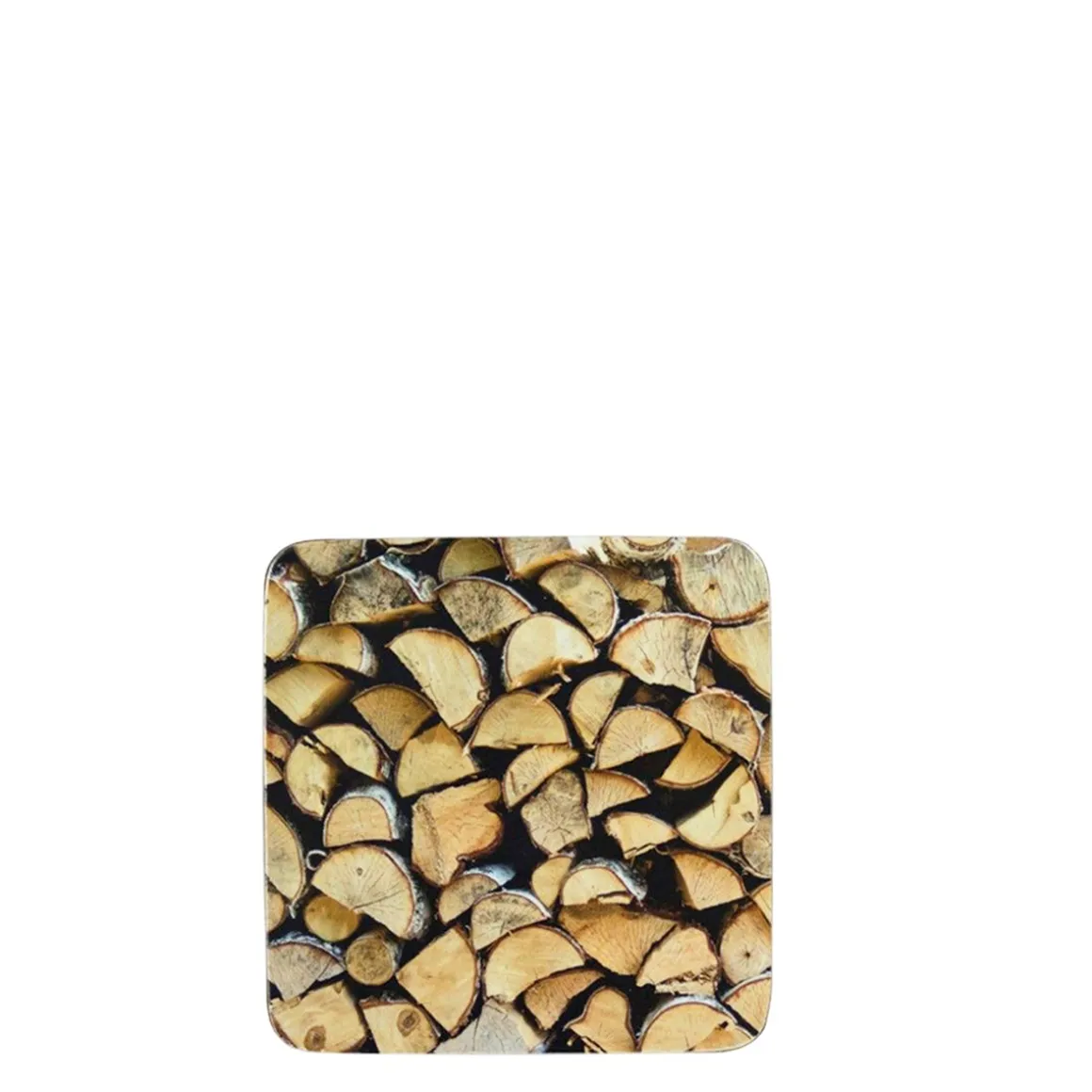 Untersetzer Holz, Kaminholz, 10x10cm, Set/6, MDF/Kork, Mars & More
