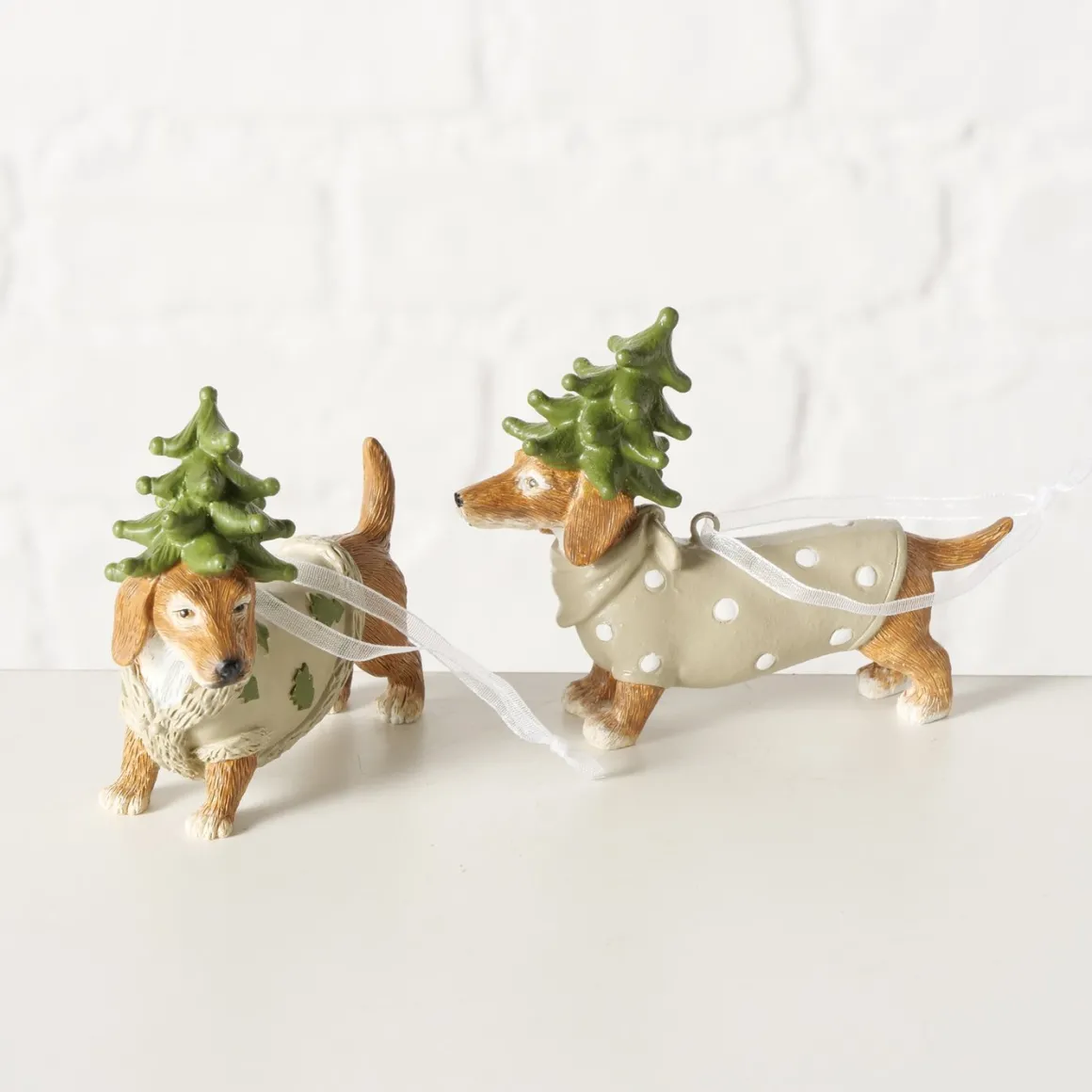 Weihnachtshänger Dackel Xander, Dackel mit Pullover und Tannenbaum-Hut, Boltze Home Collections