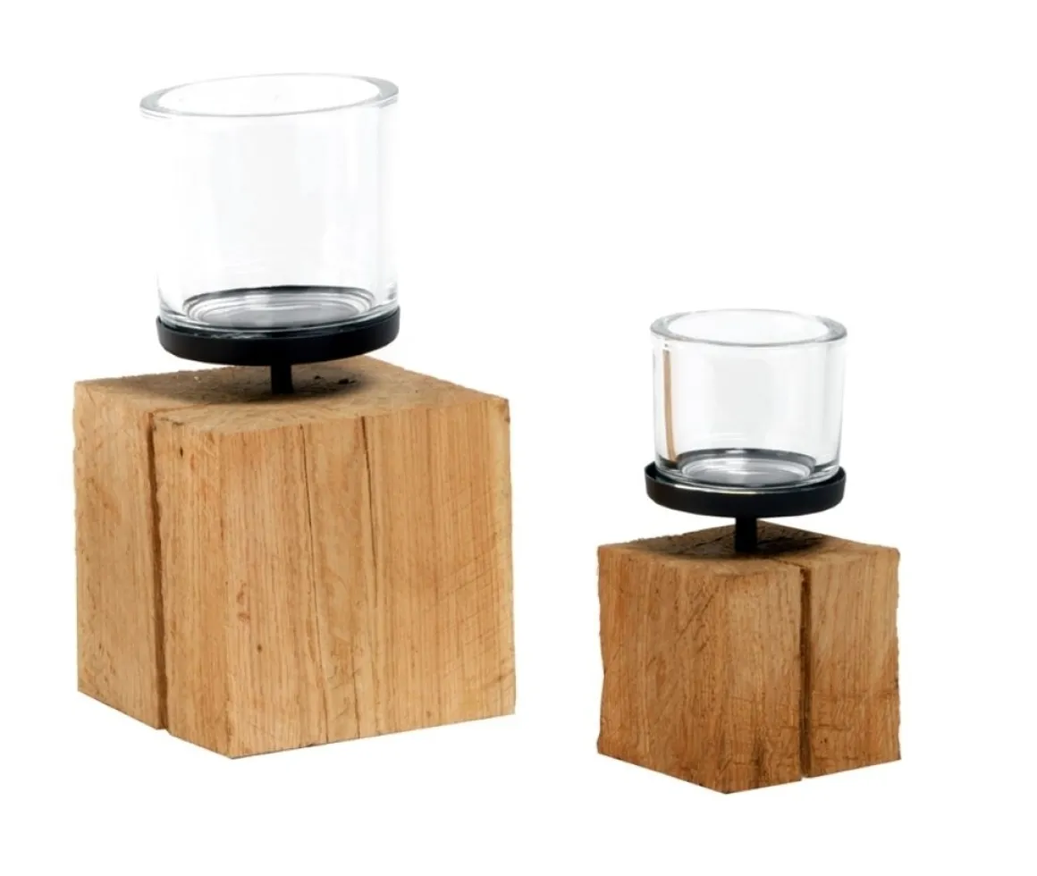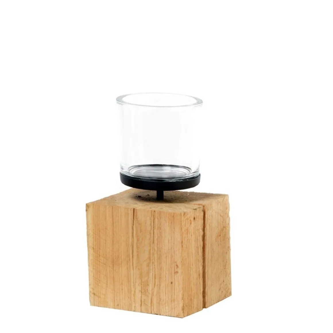 Windlicht Eiche natur, Holzwürfel Naturholz rau, 30x15cm, WMG Grünberger