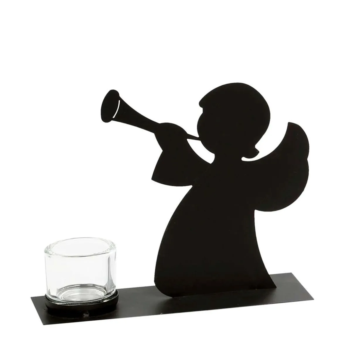 Windlicht Engel, Metallengel mit Posaune und Teelichthalter, 20cm, WMG Grünberger