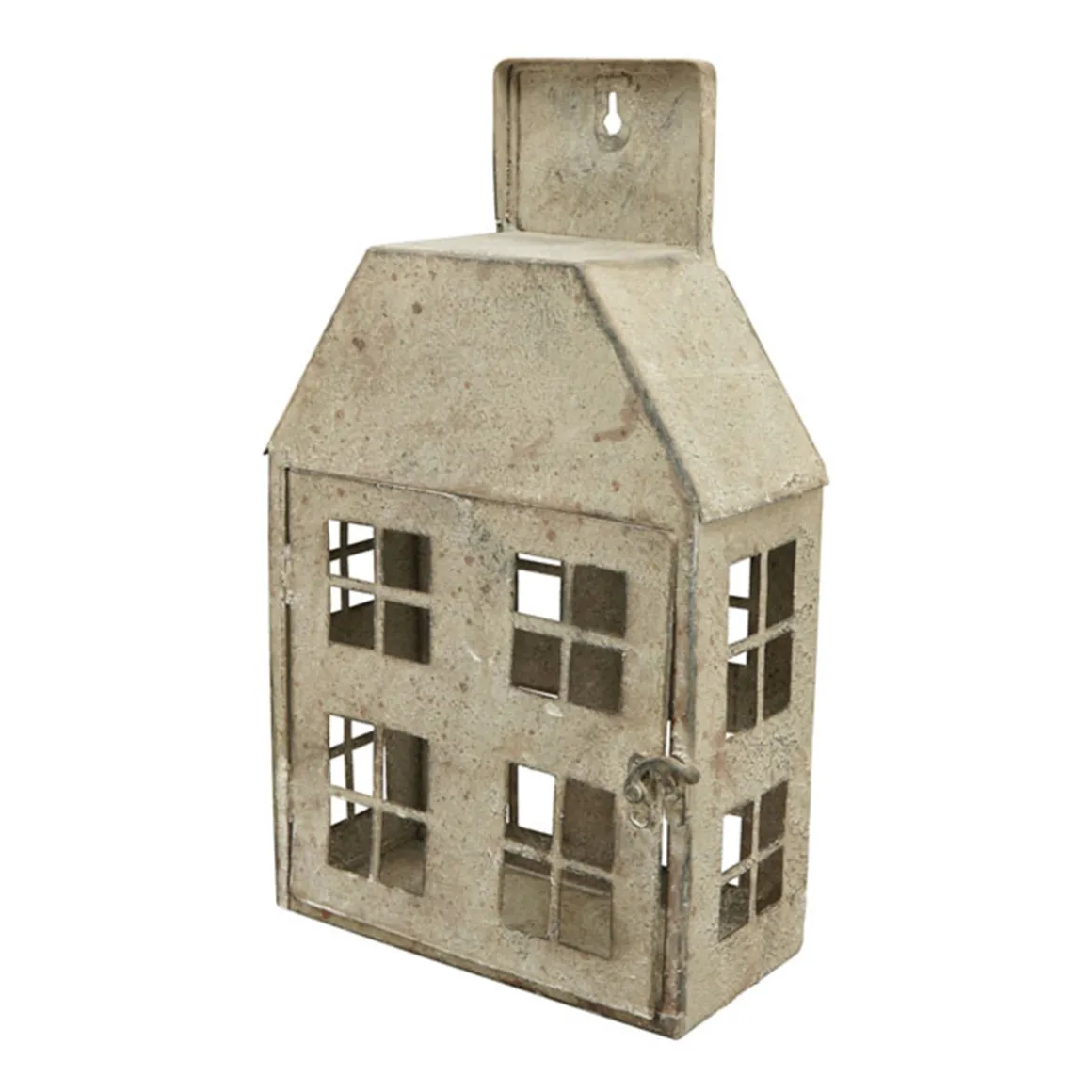 Windlicht Haus Shabby Chic grau, 20x35cm, Metallhaus im Hollandstil, zum Hängen oder Stellen